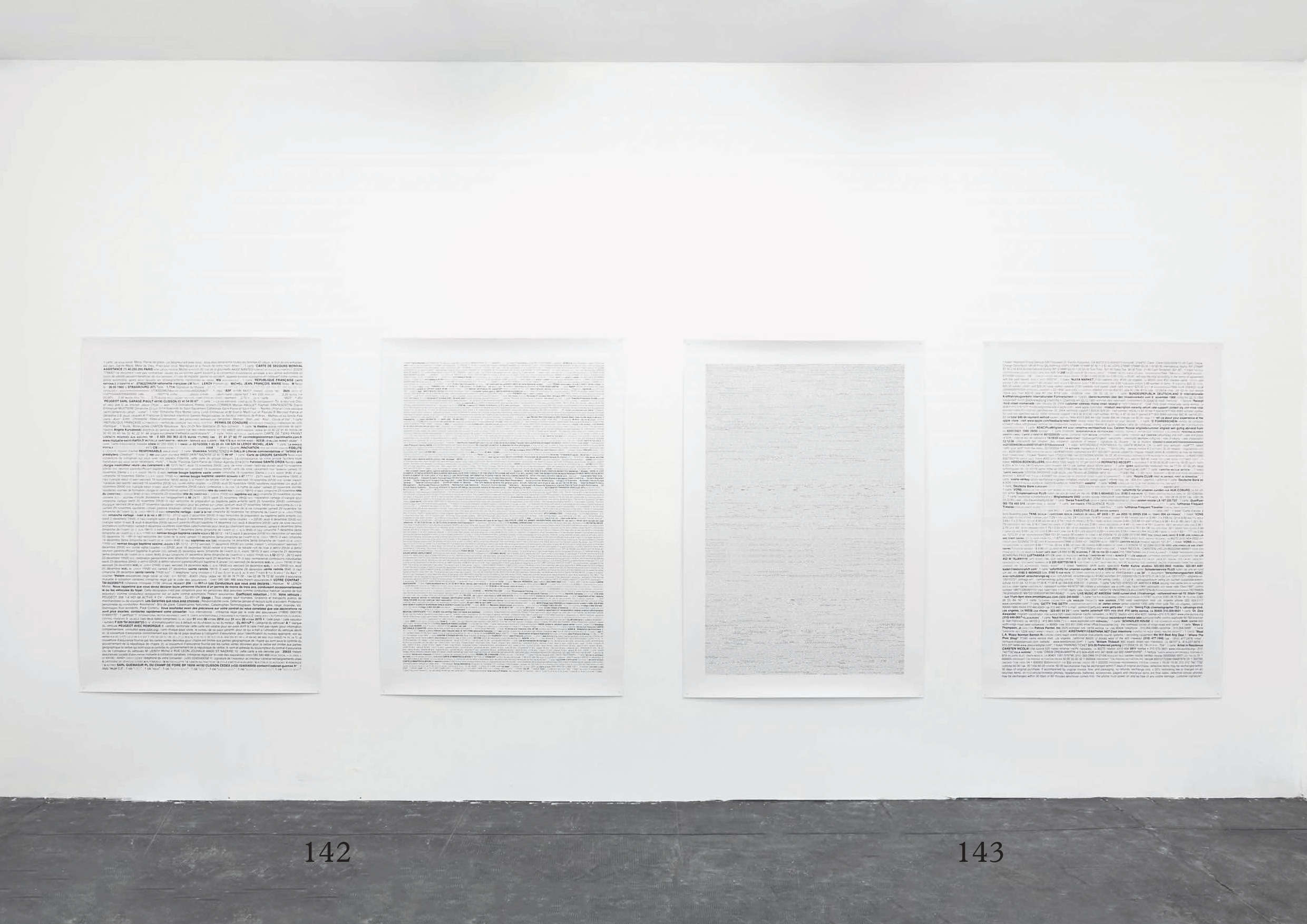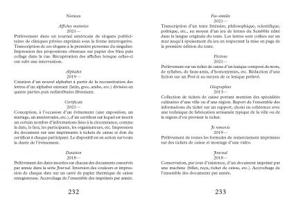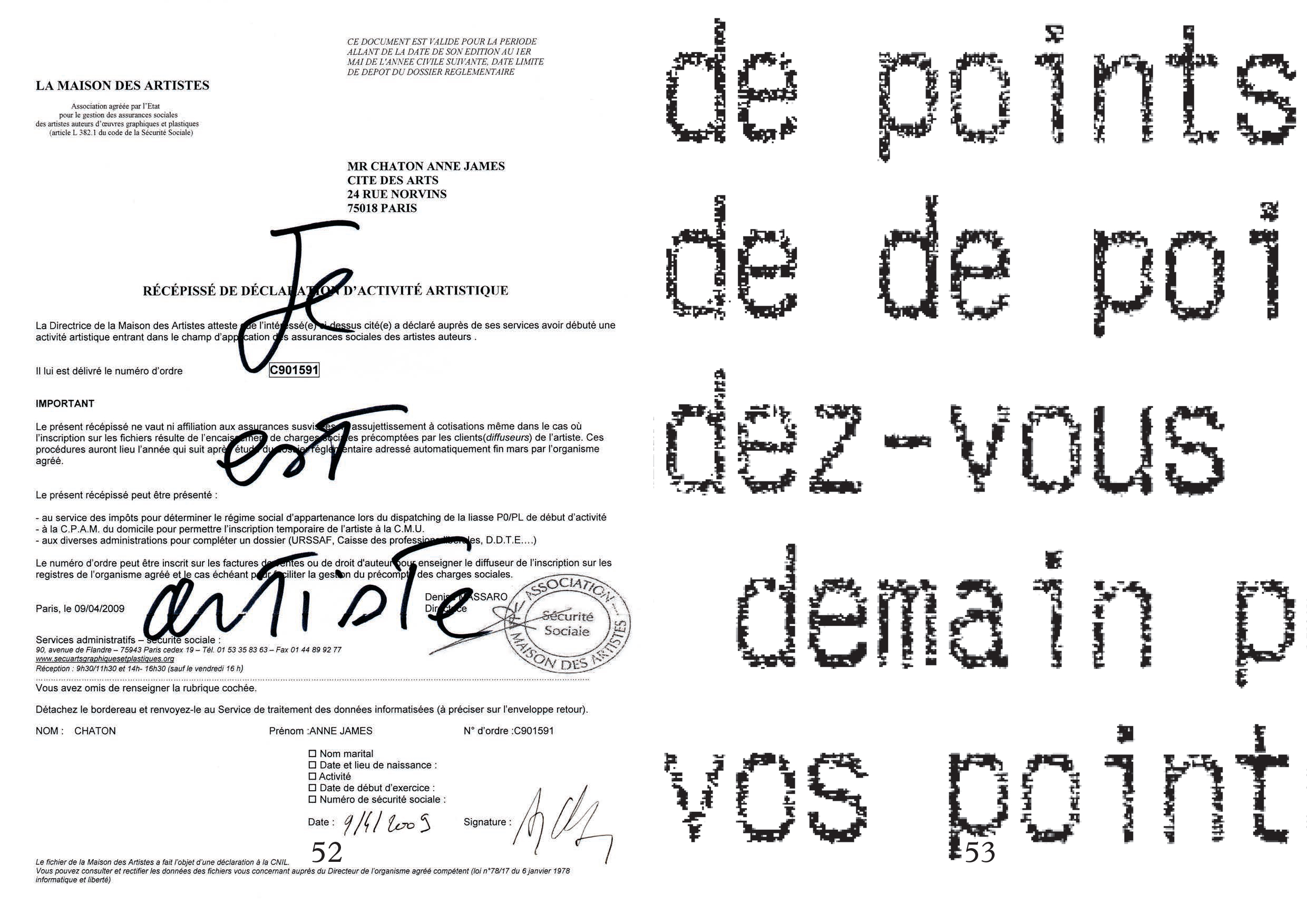 Anne-James Chaton (born in 1970 in Besançon, France), sound poet and performer, has developed a multi-polar work, based on a continuous study of the textual materials that punctuate the daily life of contemporary societies. This "poor" literature, produced on a daily basis by a multitude of machines—cash register receipts, museum entrance tickets, leaflets, business cards, credit cards, subscriptions, etc.—constitutes the material for his textual work, which is also used in the production of his work.