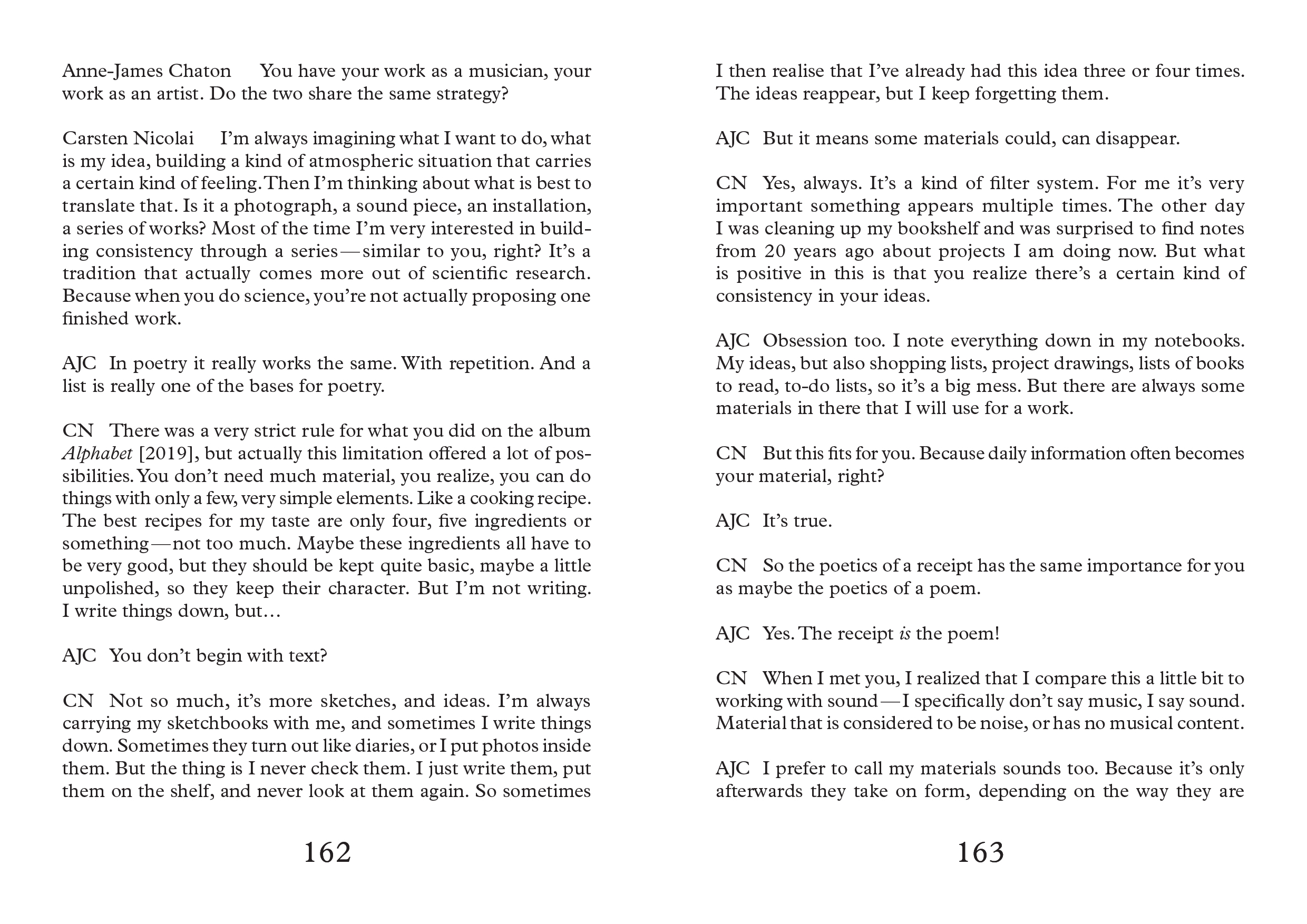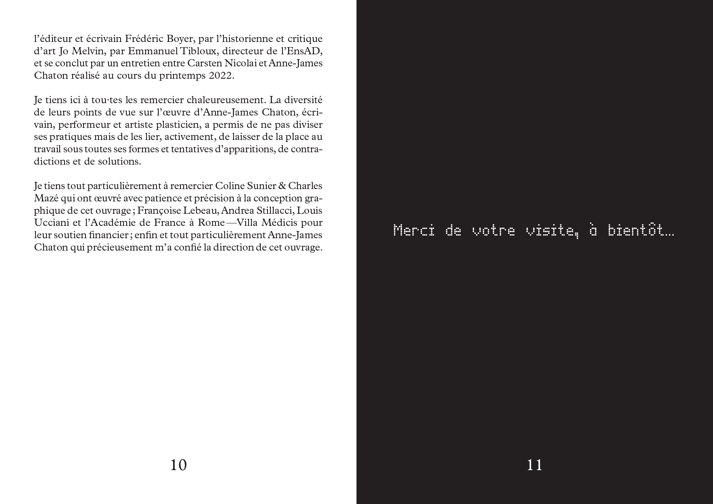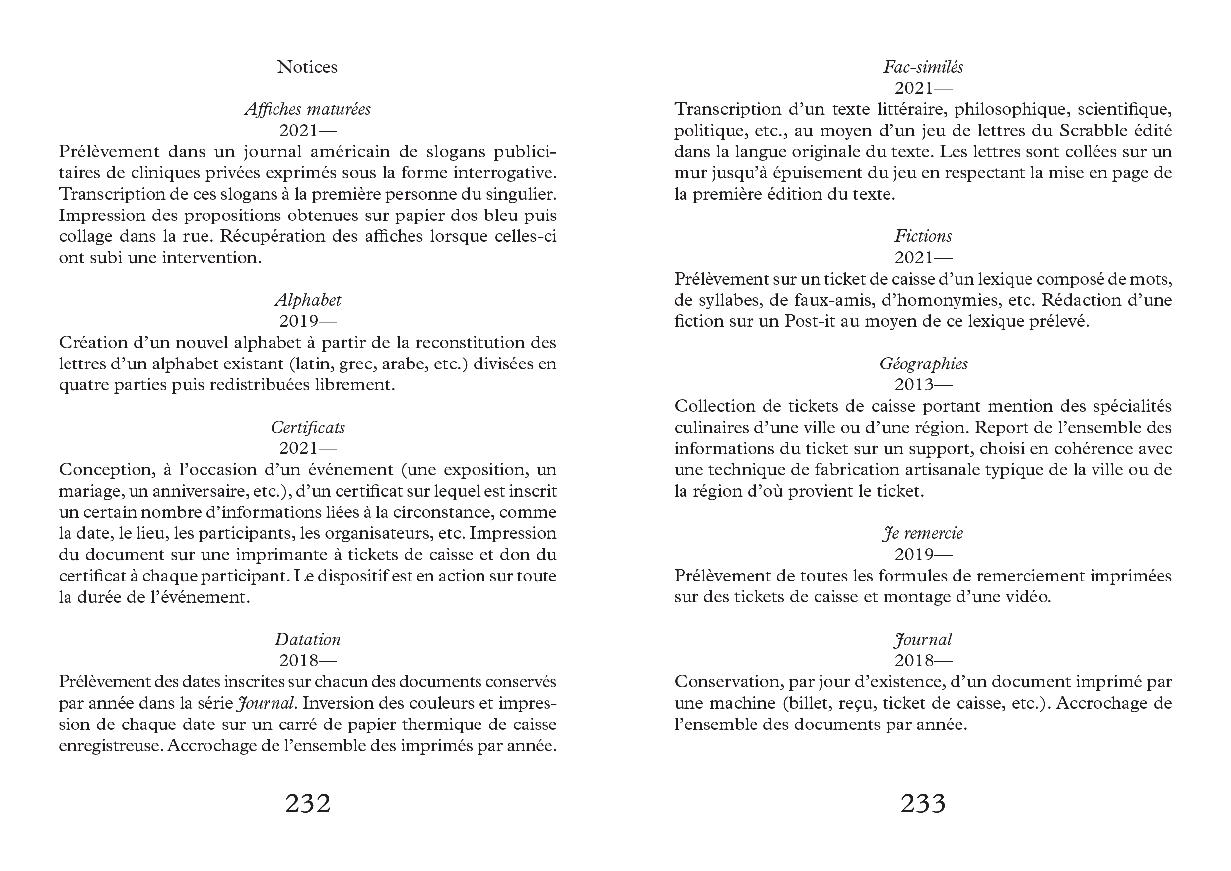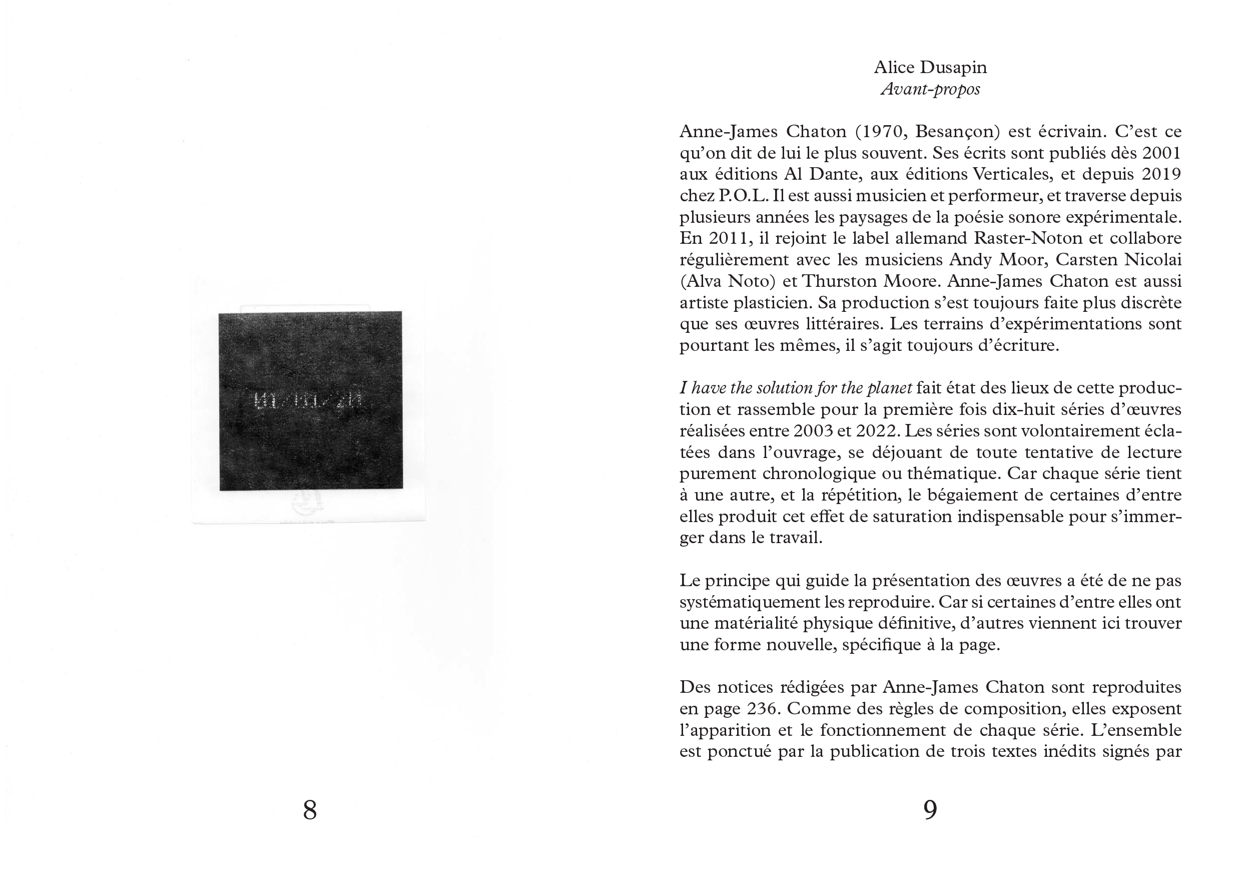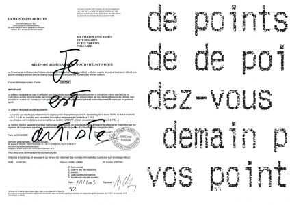 Al Dante and P.O.L., his visual works are shown by the Far West Gallery and his sound compositions are published on the German label Noton. Anne-James Chaton was a resident at the Villa Medici, French Academy in Rome in 2020. He received the