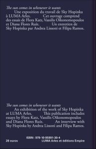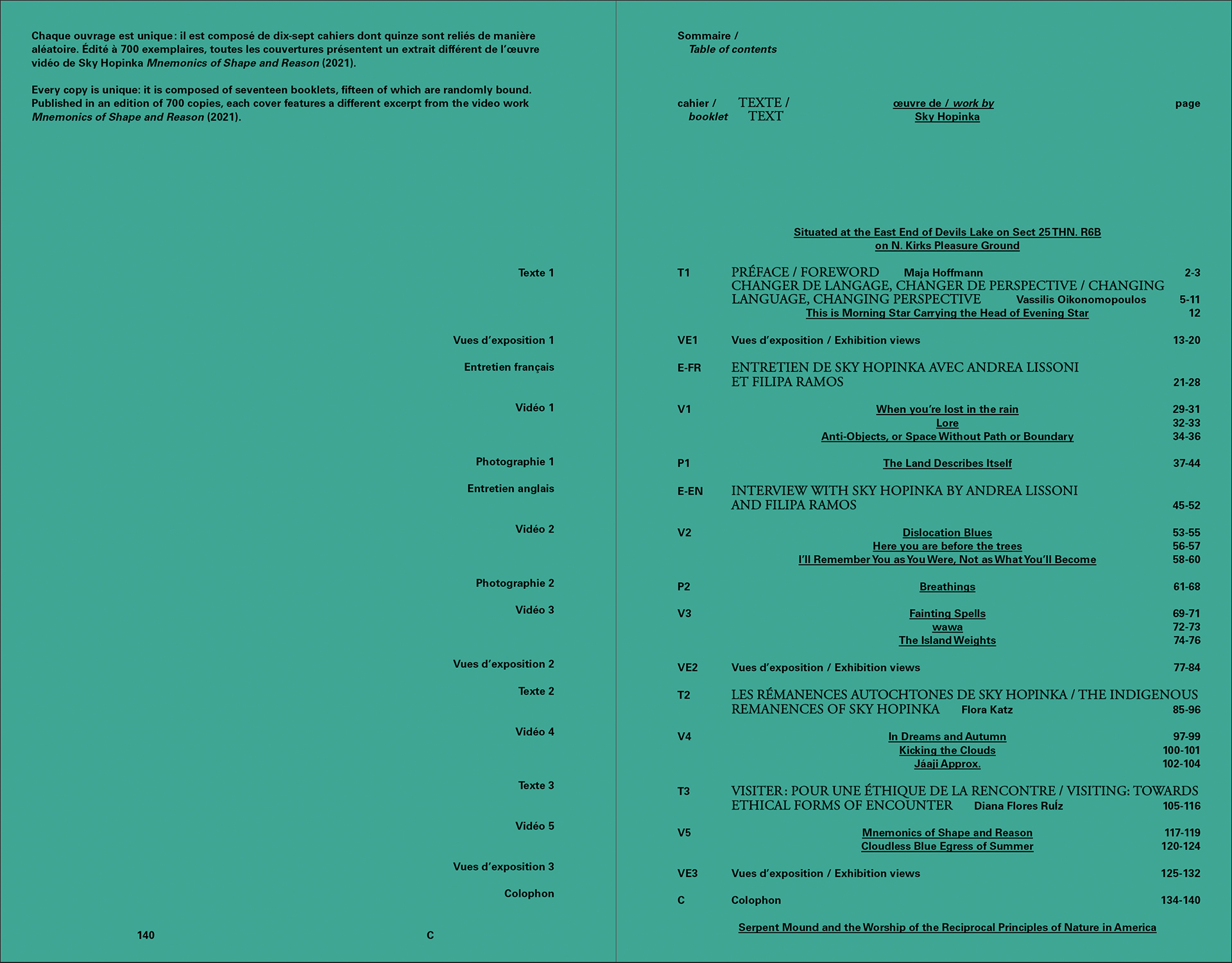 his first major exhibition in France at LUMA Arles, which includes earlier and more recent video and photographic works, includes essays by Flora Katz, Vassilis Oikonomopoulos and Diana Flores Ruíz, as well as an interview with Sky Hopinka by Andrea Lissoni and Filipa Ramos.