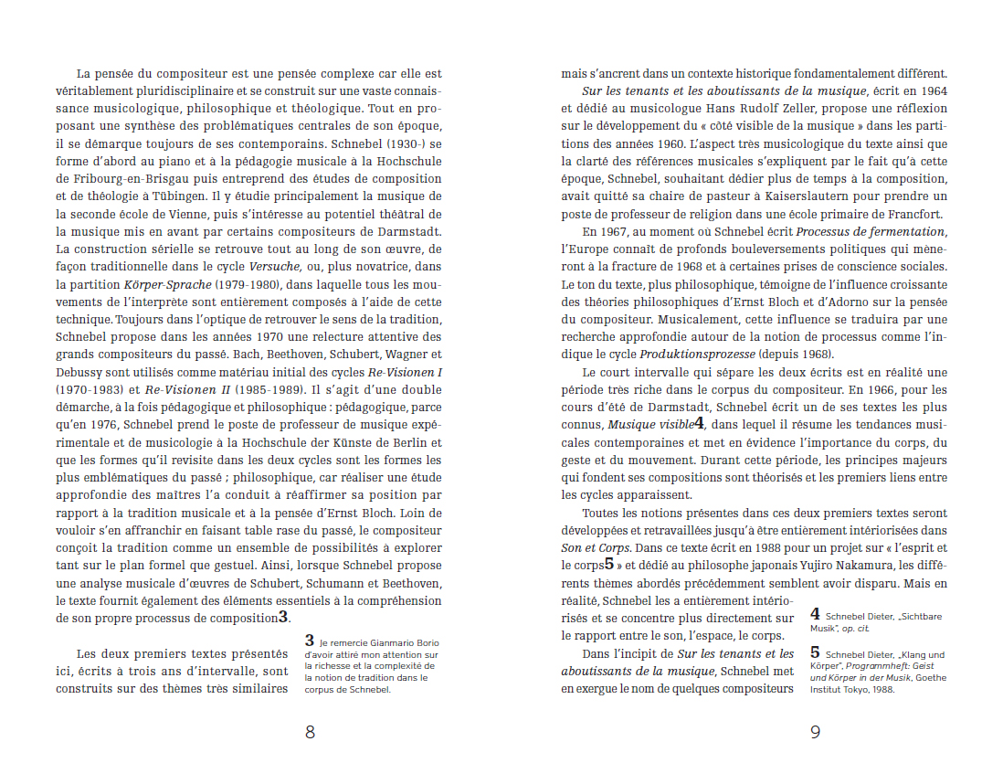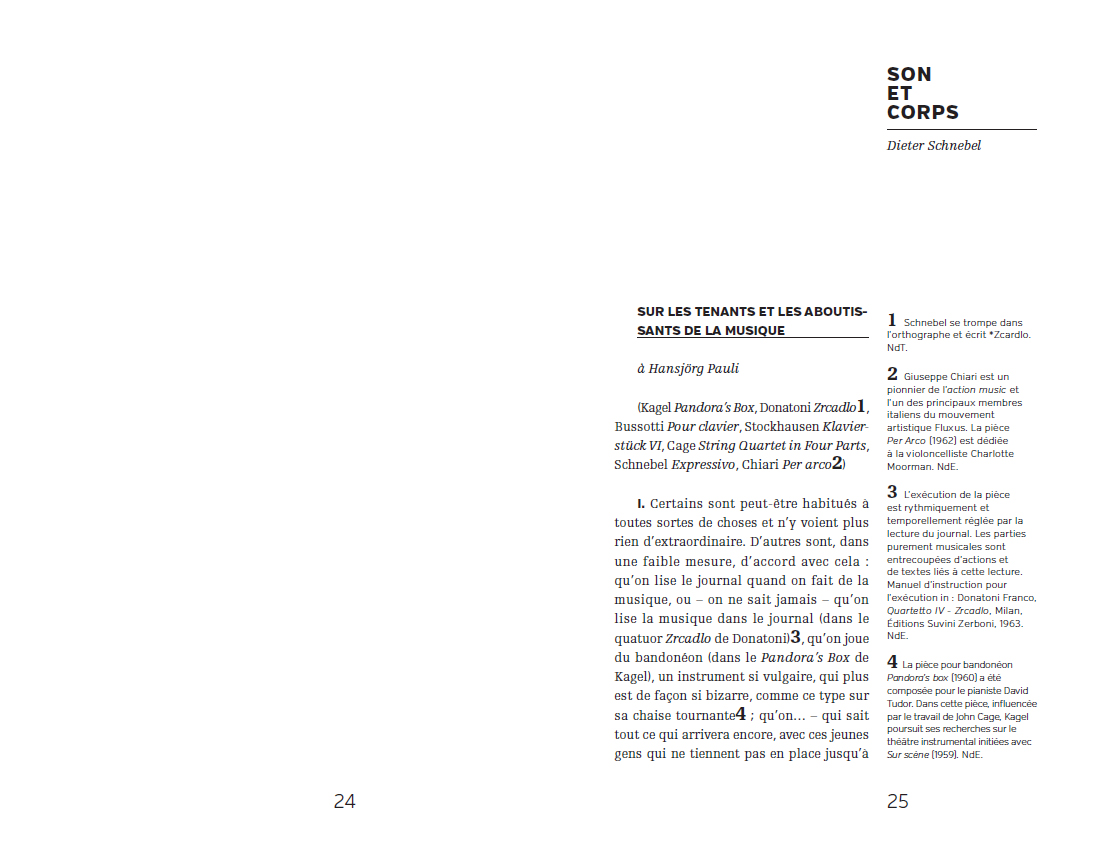 A collection of theoretical texts by the German composer: a valuable testimony of his research on the musical link between sound and body.