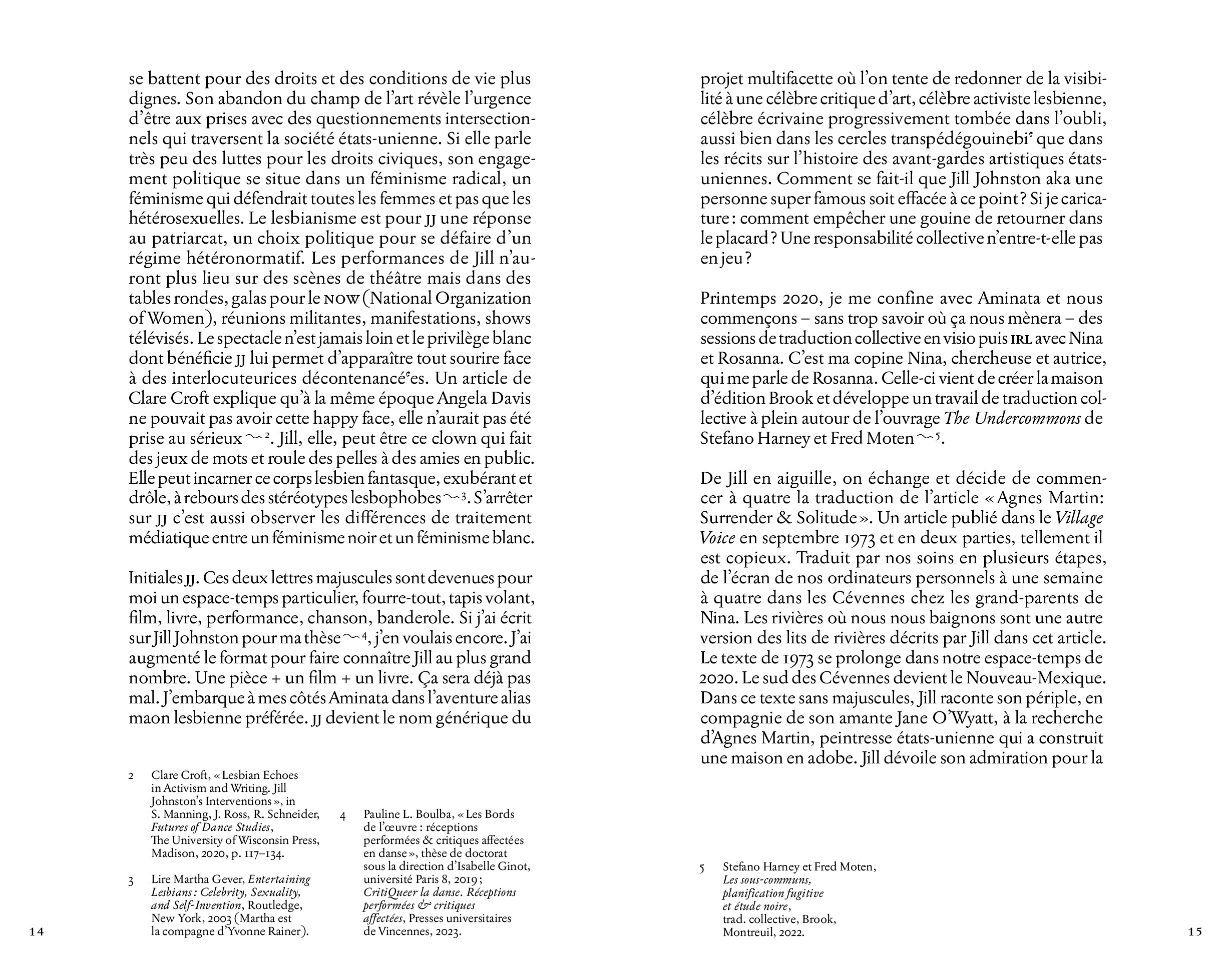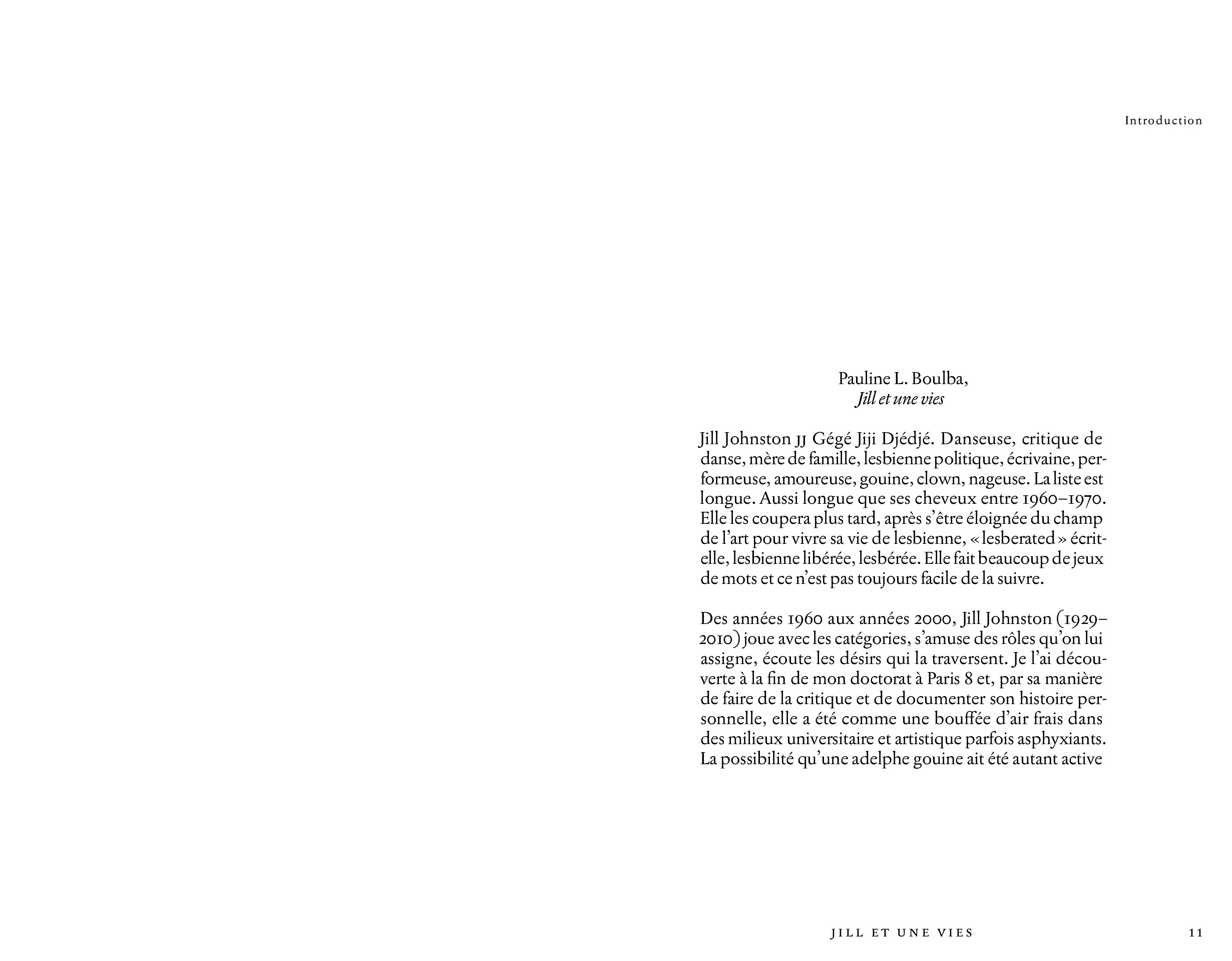 Texts by Jill Johnston; contributions by Pauline L. Boulba, Aminata Labor, Nina Kennel, Rosanna Puyol.