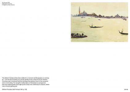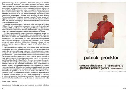 This volume brings together about sixty works from the early 1960s to the early 1990s. The title, which comes from a work in Palazzo Bentivoglio, is intended to emphasize the peculiar and subjective character of a stubbornly figurative research, marked by a great independence, though ultimately cast in its time: a portion of the world, like that—precisely—visible at the opening of a window.