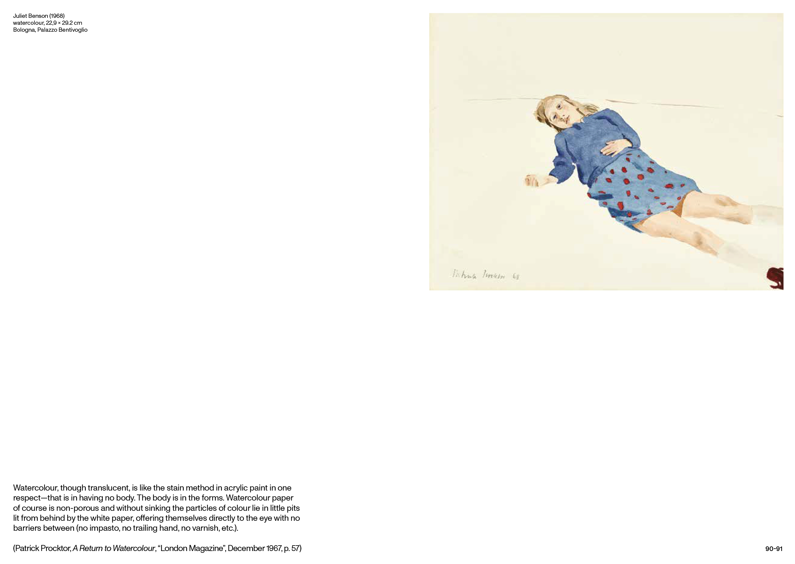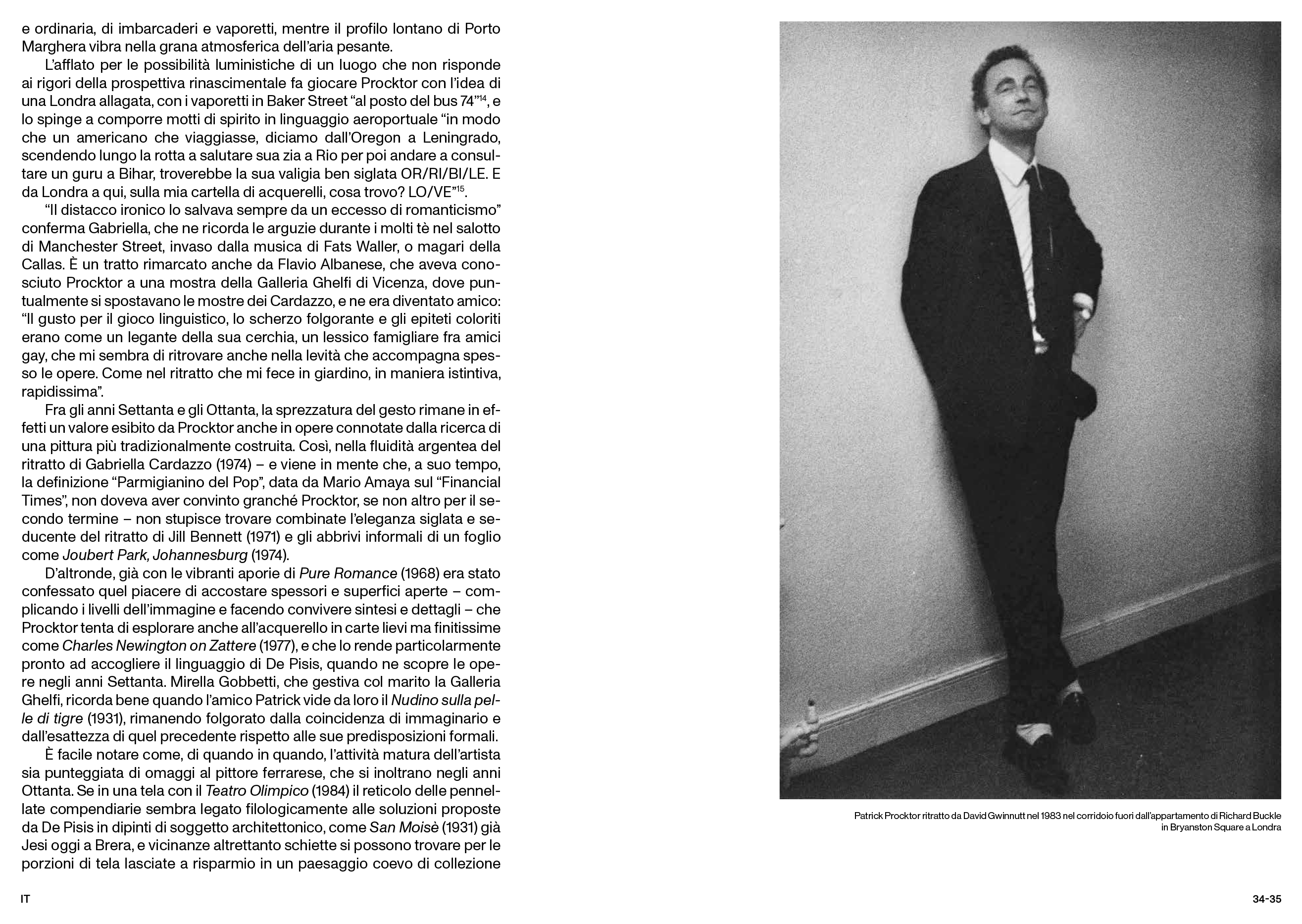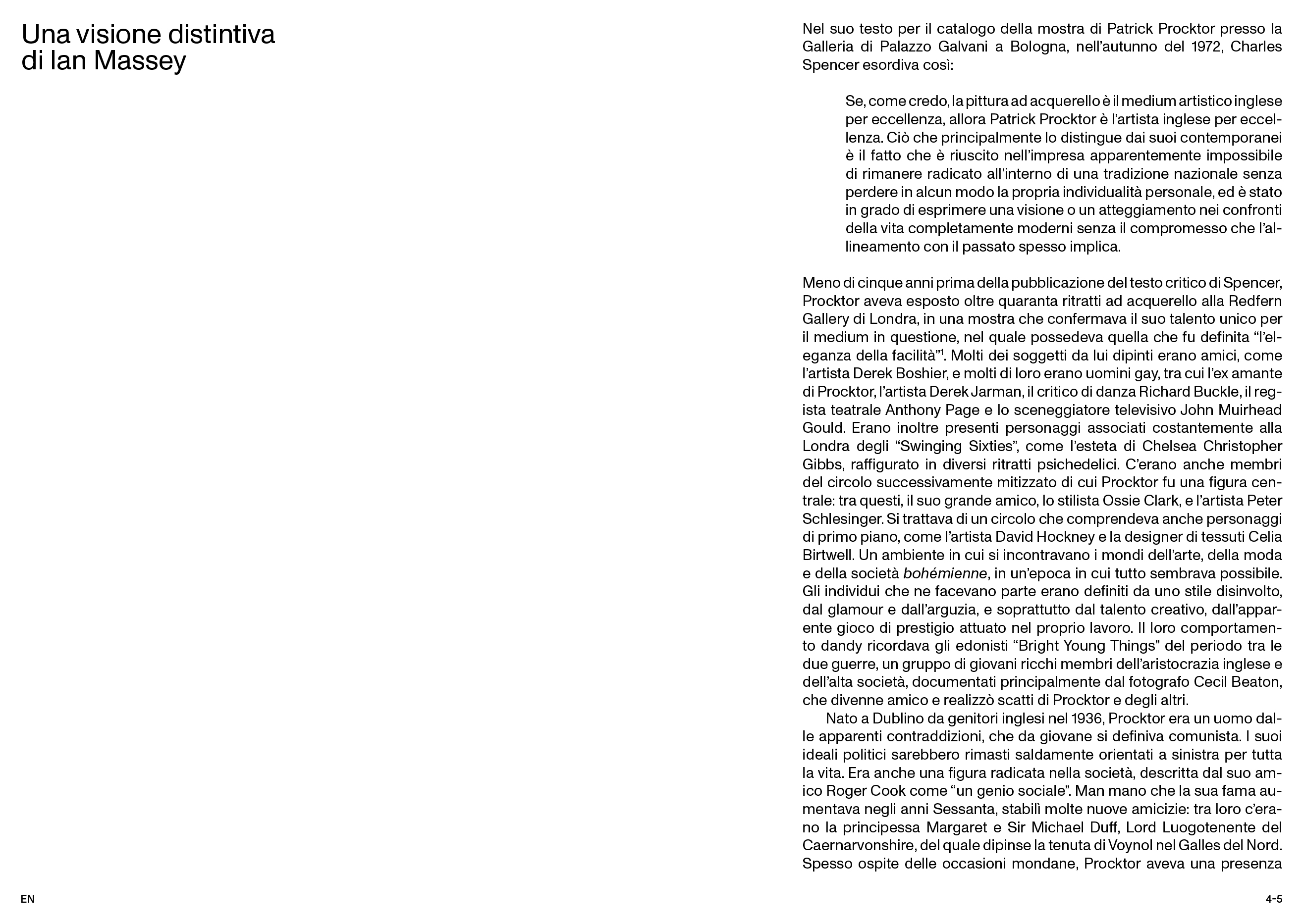 "Procktor was an immensely subtle colourist, using colour and tone to suggest atmosphere and emotion. He understood the value of understatement, that a mere handful of painted marks could serve more powerfully than the grand gesture. Often in his watercolour portraits, detail and sometimes form are filtered out, deemed inessential to an art of poetic fragments. The portraits of the sixties and seventies form a generational snapshot, that of the largely gay world of which Procktor was part, most of its inhabitants long gone."