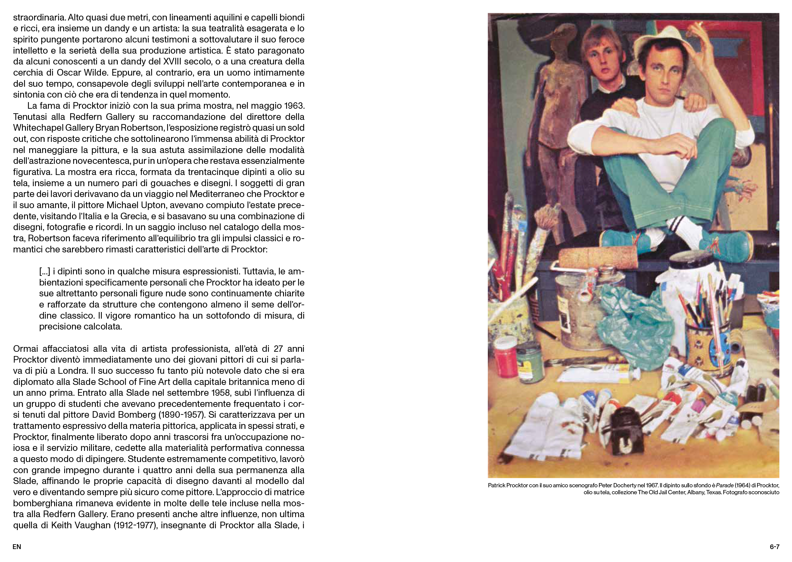 A monographic itinerary on Patrick Procktor (1936-2003), a leading, contradictory and flamboyant figure in the London art scene of the 1960s and 1970s, through a selection of about sixty works, including paintings, watercolors and drawings.