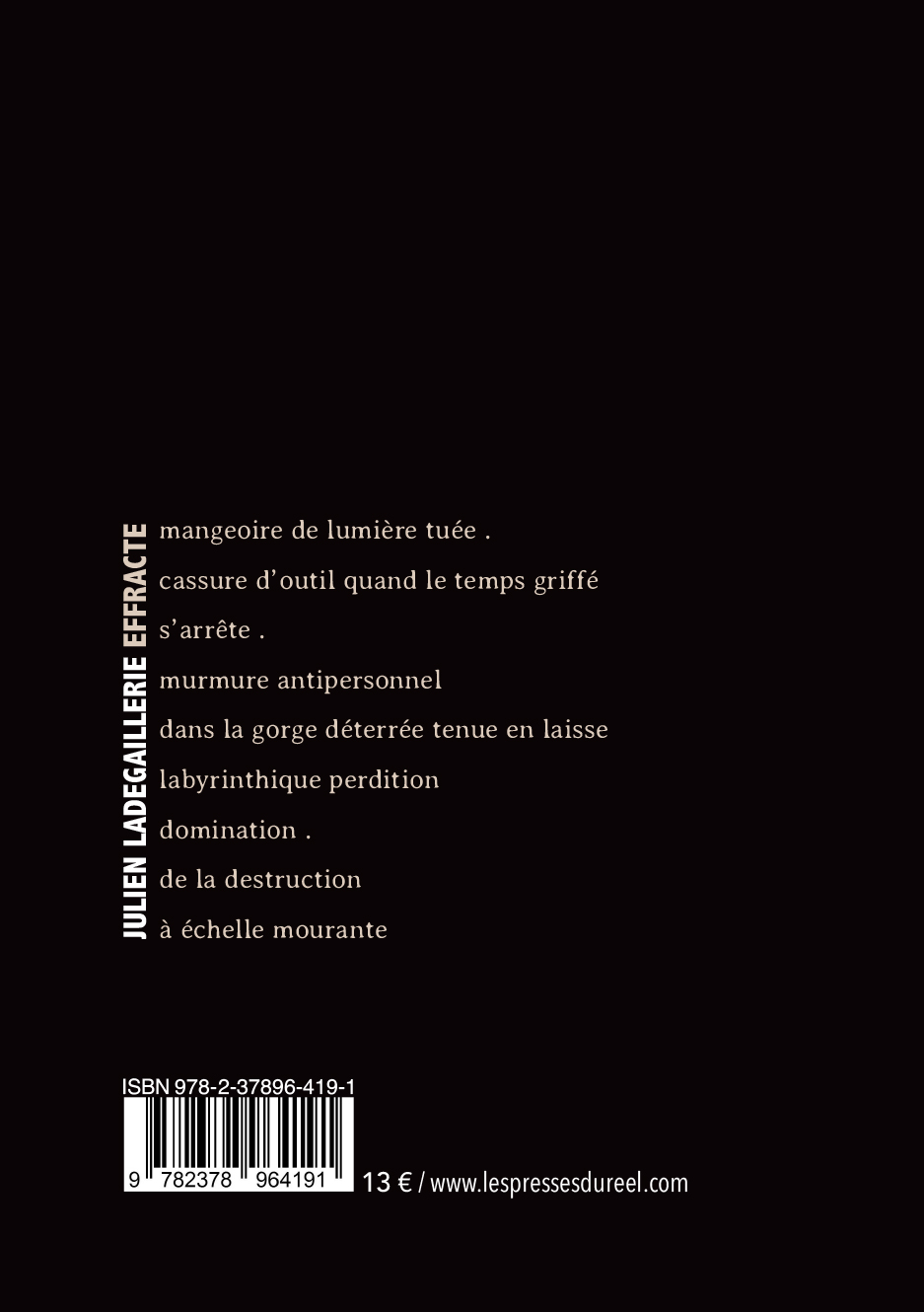 One of the most inventive authors of the new poetry scene, Julien Ladegaillerie is the director of Pariah editions.