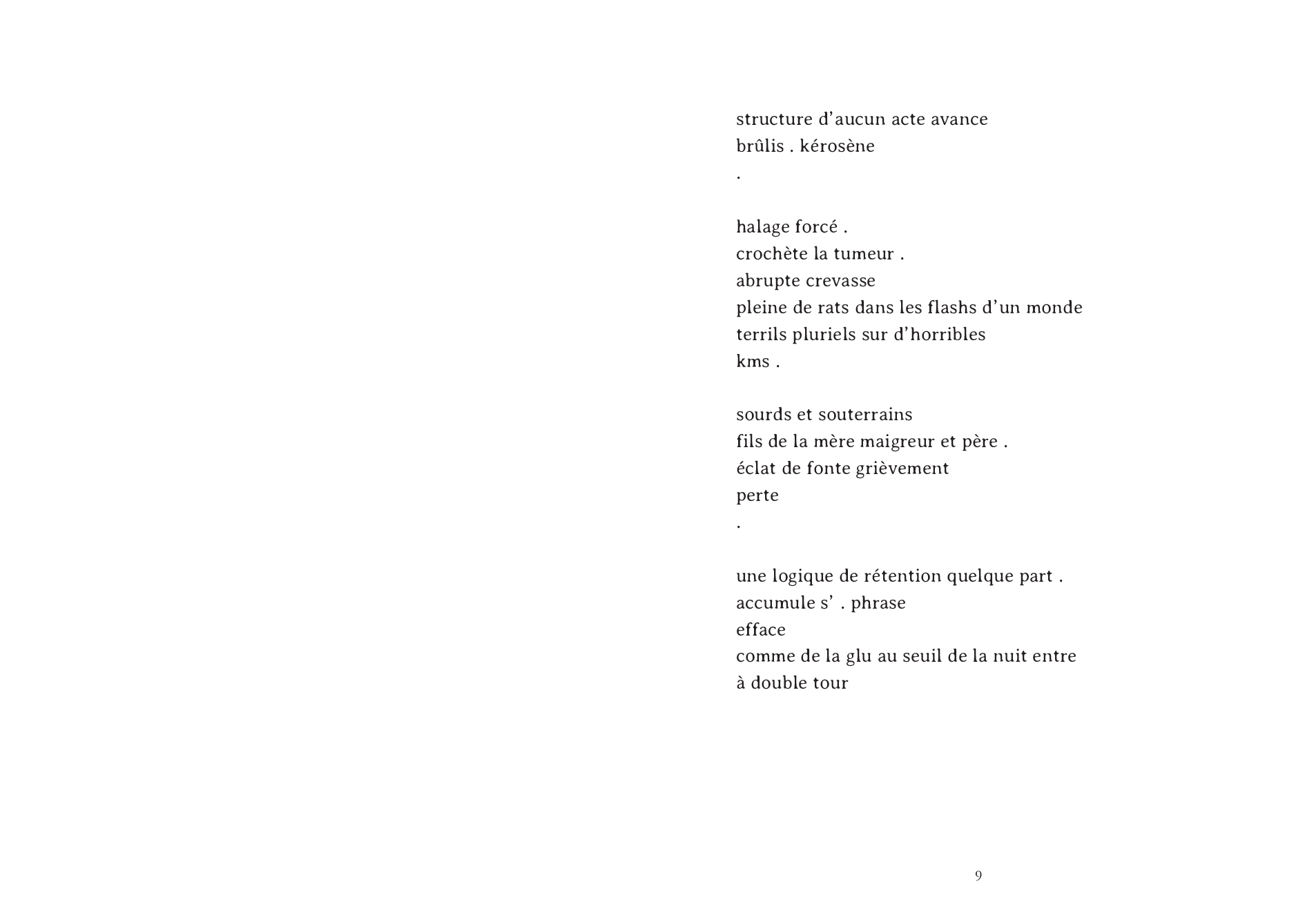 A poetic text fragmented into three parts each generating its own handicap in expressing the economy as alienation from life.