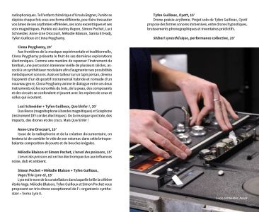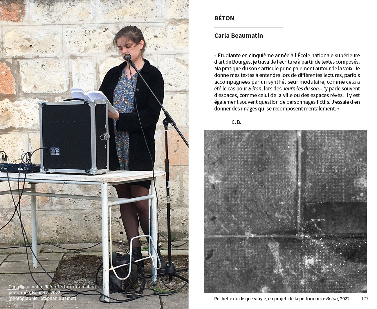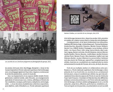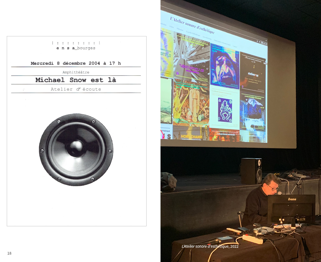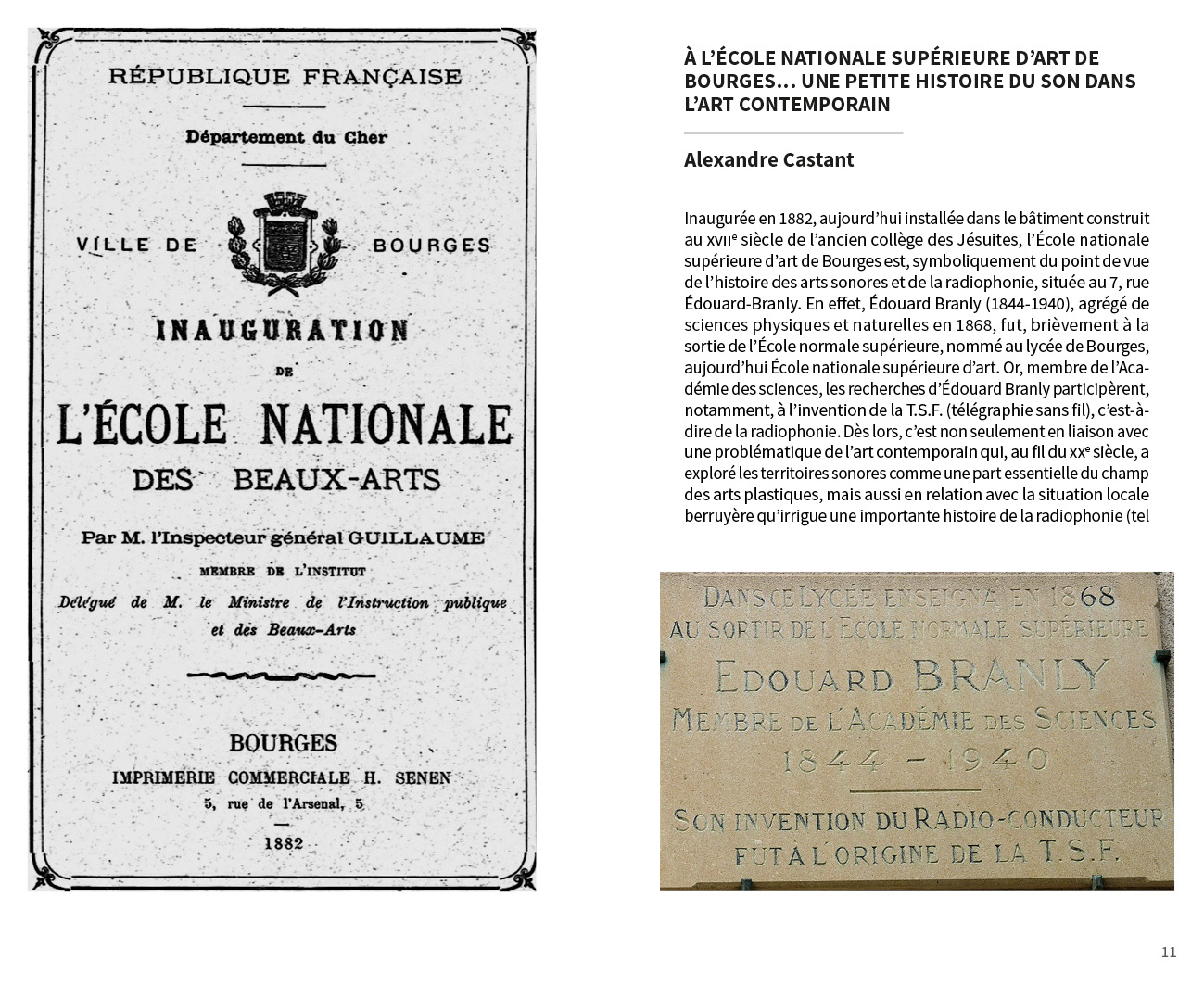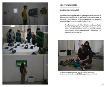 Les Cahiers du son invite to discover the stimulating inventiveness which, today, animates sound creation in the field of visual arts, and within an art school (a survey of the historical programming of sound art works by the École nationale supérieure d'art de Bourges and its gallery La Box, which for more than thirty years has regularly considered music, sound, noise, silence or voice as objects of artistic, visual or plastic research).