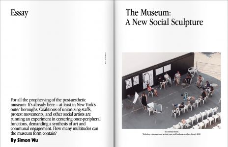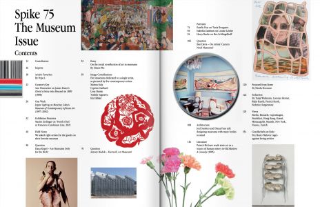 Spike #75 fêtes the museum in all its stuffy, messy, showy, old-timey glory, as a home-away-from-home, the address of solace and astonishment. Featuring William Pope.L, Simon Wu, Louise Lawler, Ben Davis, Ann Demeester, Anthony Hudek, Meschac Gaba, Bernadette Van-Huy, Ghislaine Leung, Estelle Hoy, Tea Hacic-Vlahovic, and many more.