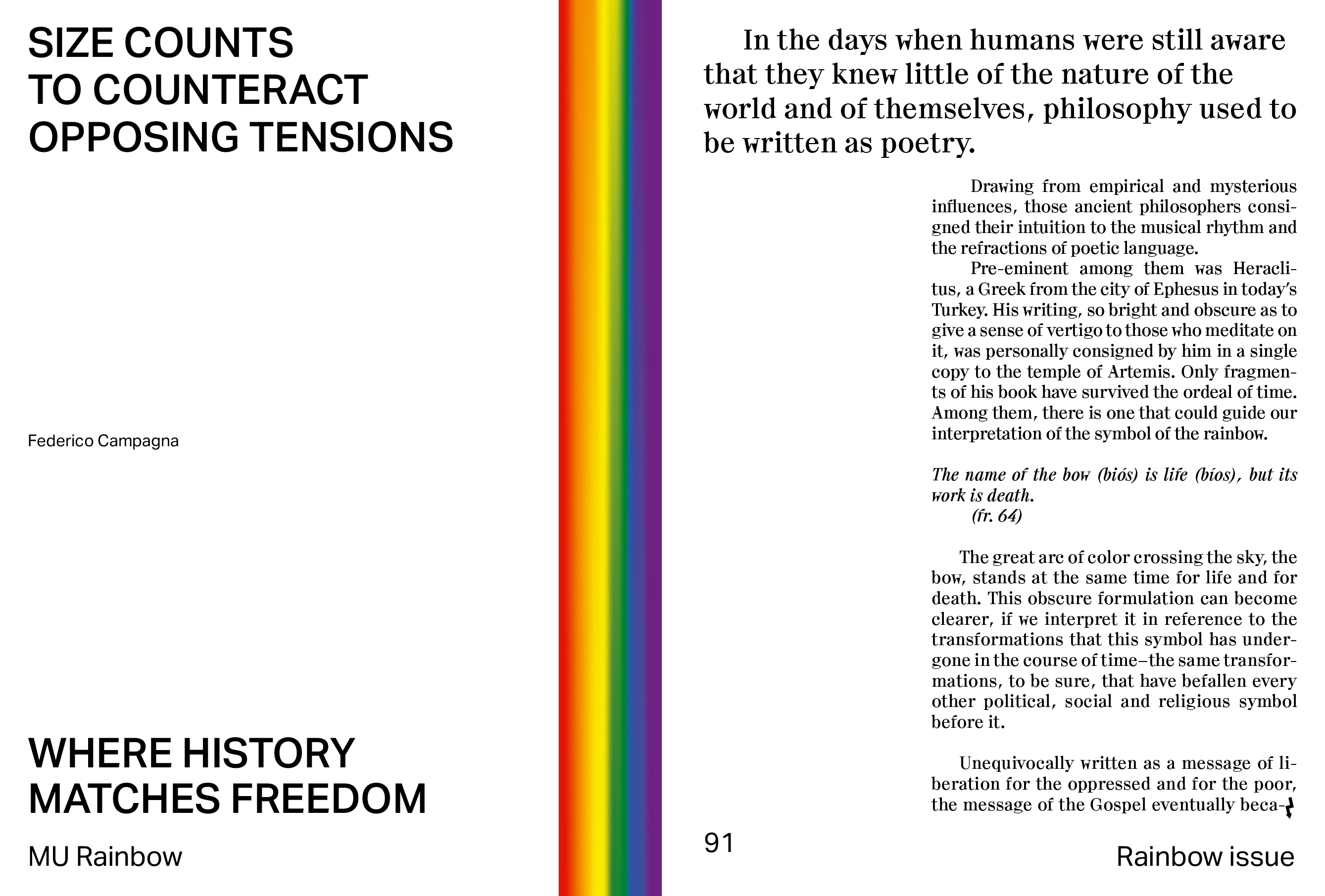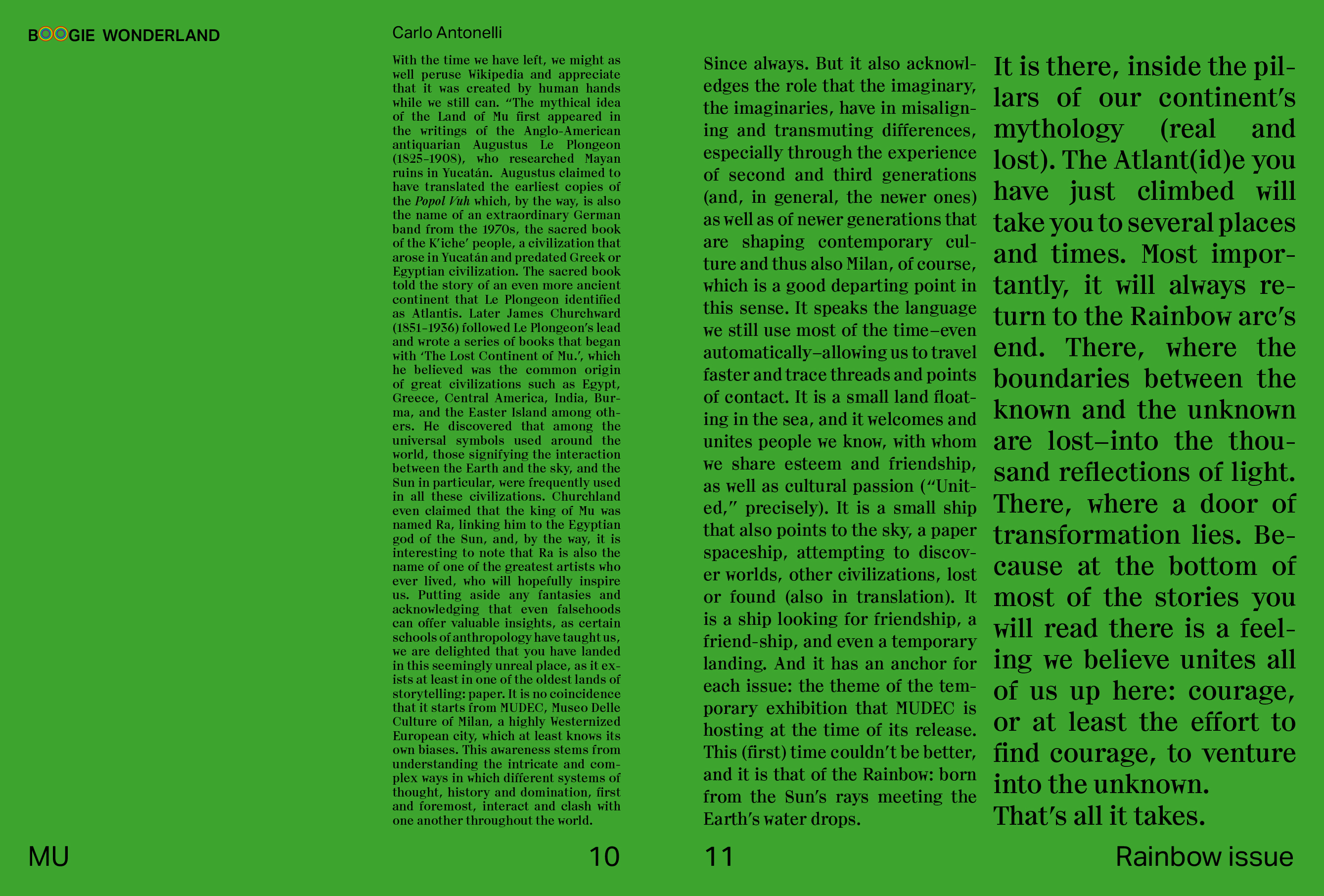 MUdec United, the new publication of the MUDEC – Museo delle Culture di Milano, one of the Italian leading institutions, is a book-zine dedicated to interdisciplinary research on world cultures. The first issue addresses the themes explored with the exhibition Rainbow – Colors and wonders between myths, arts and science, a project composed of different stories related to the rainbow as a natural, cultural, spiritual and human phenomenon.