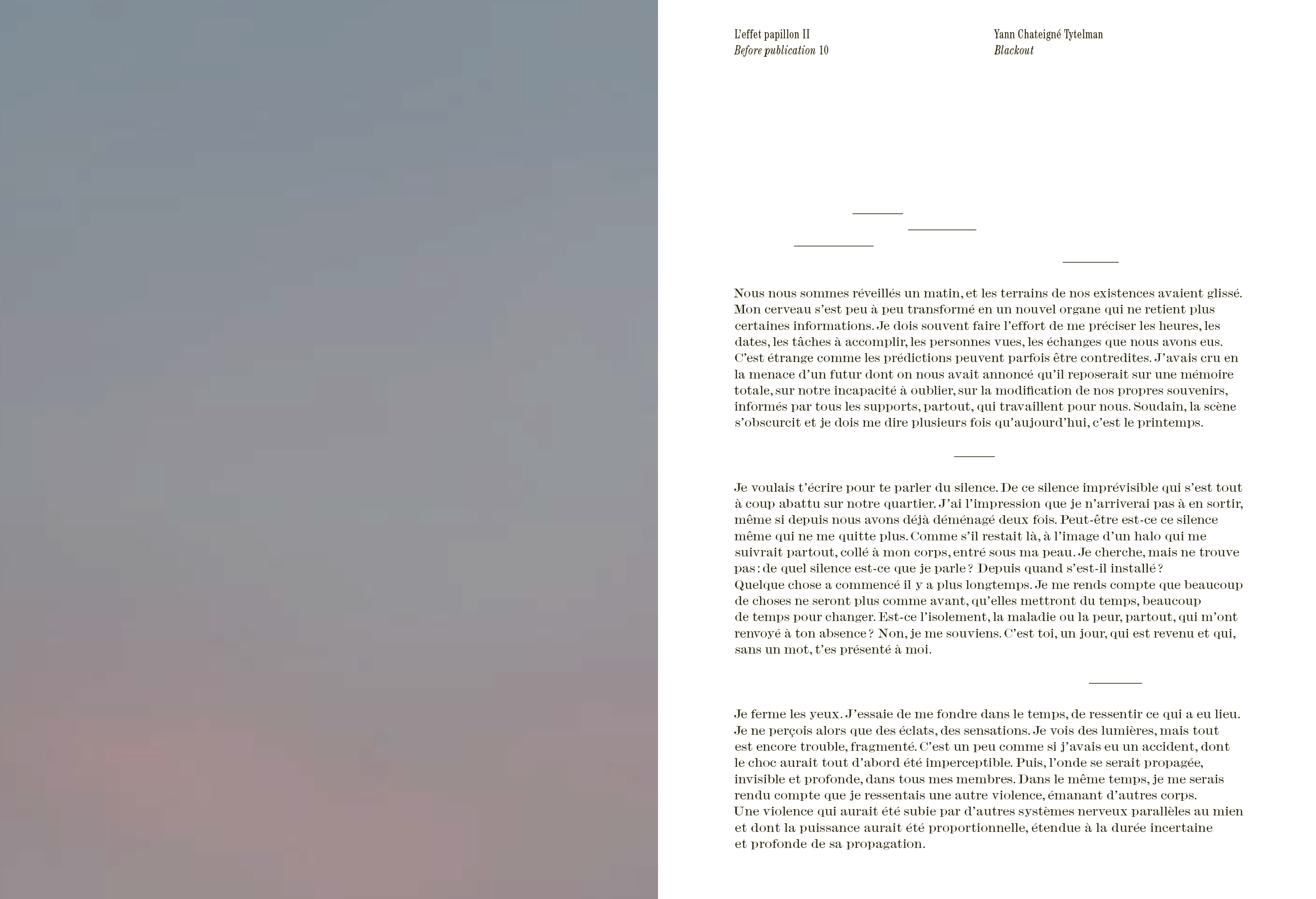 Published in the Before publication series, which gathers authors' texts or artists' inserts.