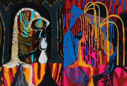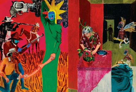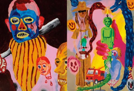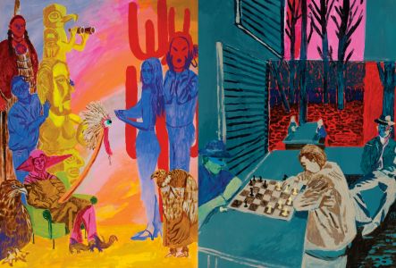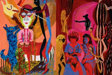 A series of works by the duo of painters Les Sœurs Siamoises, who work the images together "like a decomplexed table tennis game, with Indian cactus in the pin-up colors of the forests of the kingdom of Siam".