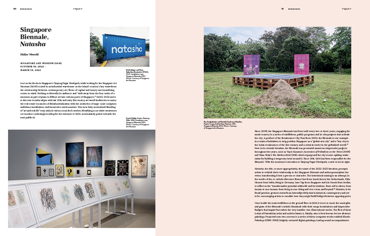 Founded in 1987 in Montreal, led by André-Louis Paré since 2013, Espace art actuel is an essential bilingual magazine for the promotion of contemporary art in the field of sculpture, installation and all other art forms associated with the notion of spatiality.