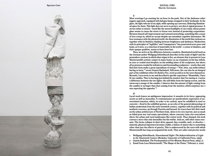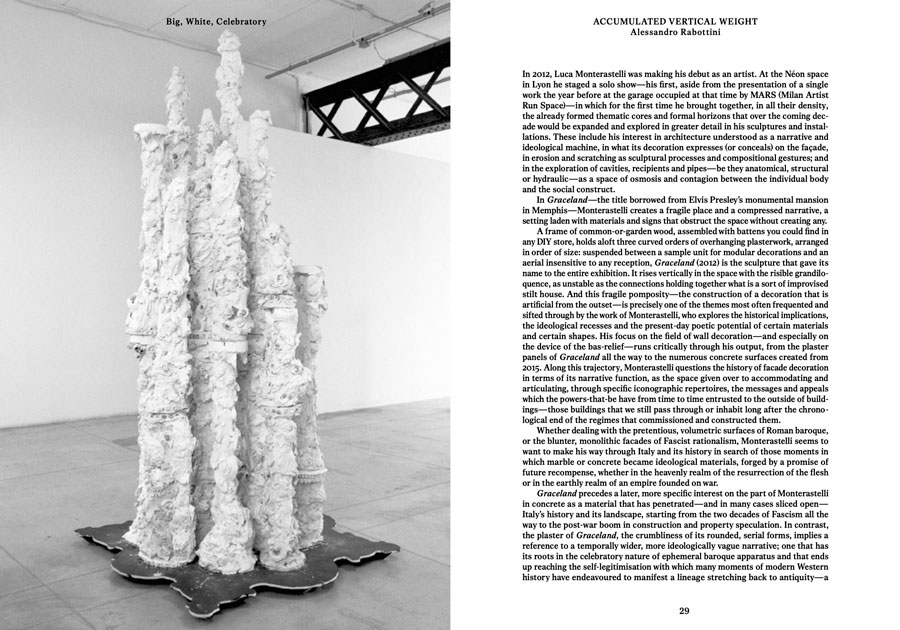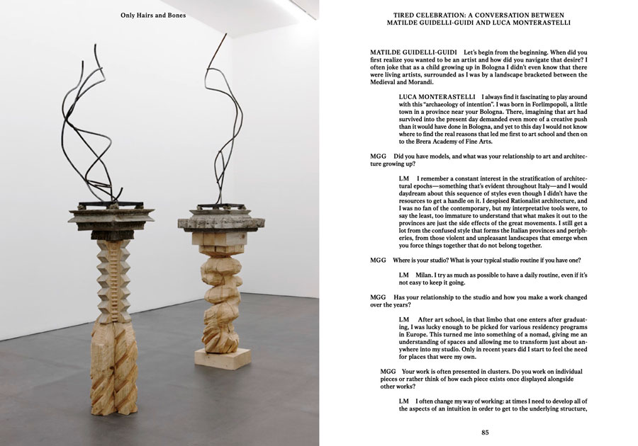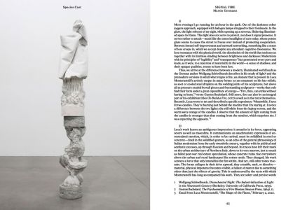 Amid these four main groupings, we find images of individual works, some conceived for group shows, together with an essay by Martin Germann, a conversation between Matilde Guidelli-Guidi and the artist, and an introduction essay to Monterastelli's oeuvre by Alessandro Rabottini.