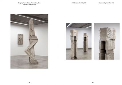 With four chapters corresponding to four solo shows that he staged in Milan, Otegem, Antwerp and Naples, the architecture of the book is structured around the photographic documentation of these exhibitions, each introduced with a text written by the artist for the occasion. The centrality of Monterastelli's writing to the book reflects his way of conceiving the medium of the personal exhibition as a specific narrative context, as a story that takes place between and with the works. This impulse of his towards a metaphorical and imaginary narrative is echoed by the eloquence of the titles of the works, which accompany the images in a story told across the pages.