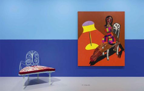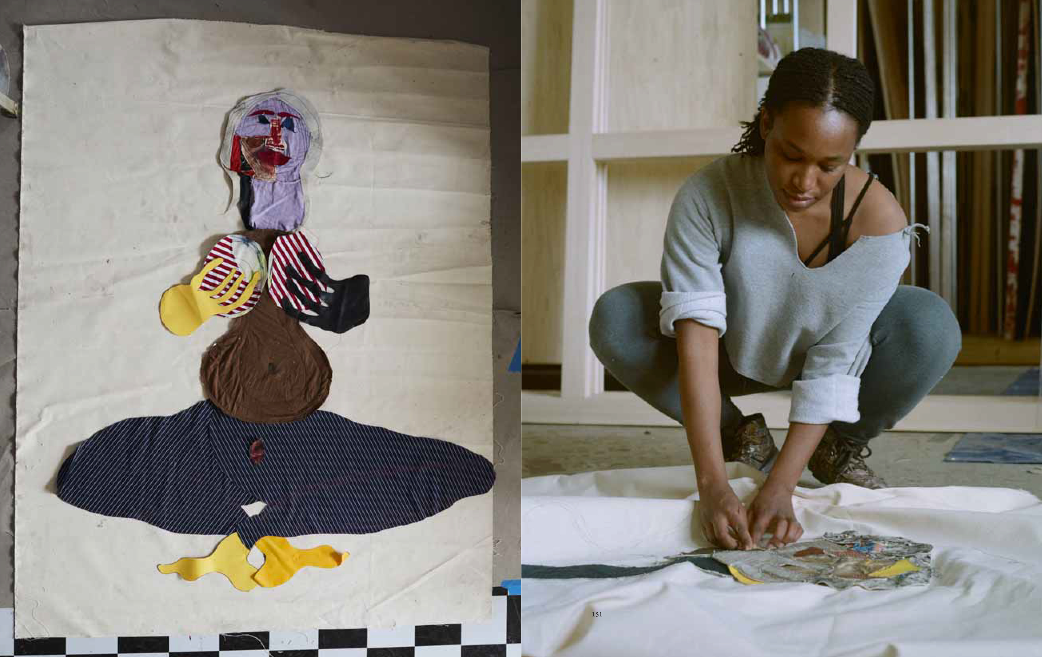 Tschabalala Self (born 1990 in Harlem, lives and works between New York and New Haven) is an artist who builds a singular style from the syncretic use of both painting and printmaking to explore ideas about the Black body. She constructs depictions of predominantly female bodies using a combination of sewn, printed, and painted materials, traversing different artistic and craft traditions. The formal and conceptual aspects of Self's work seek to expand her critical inquiry into selfhood and human flourishing.