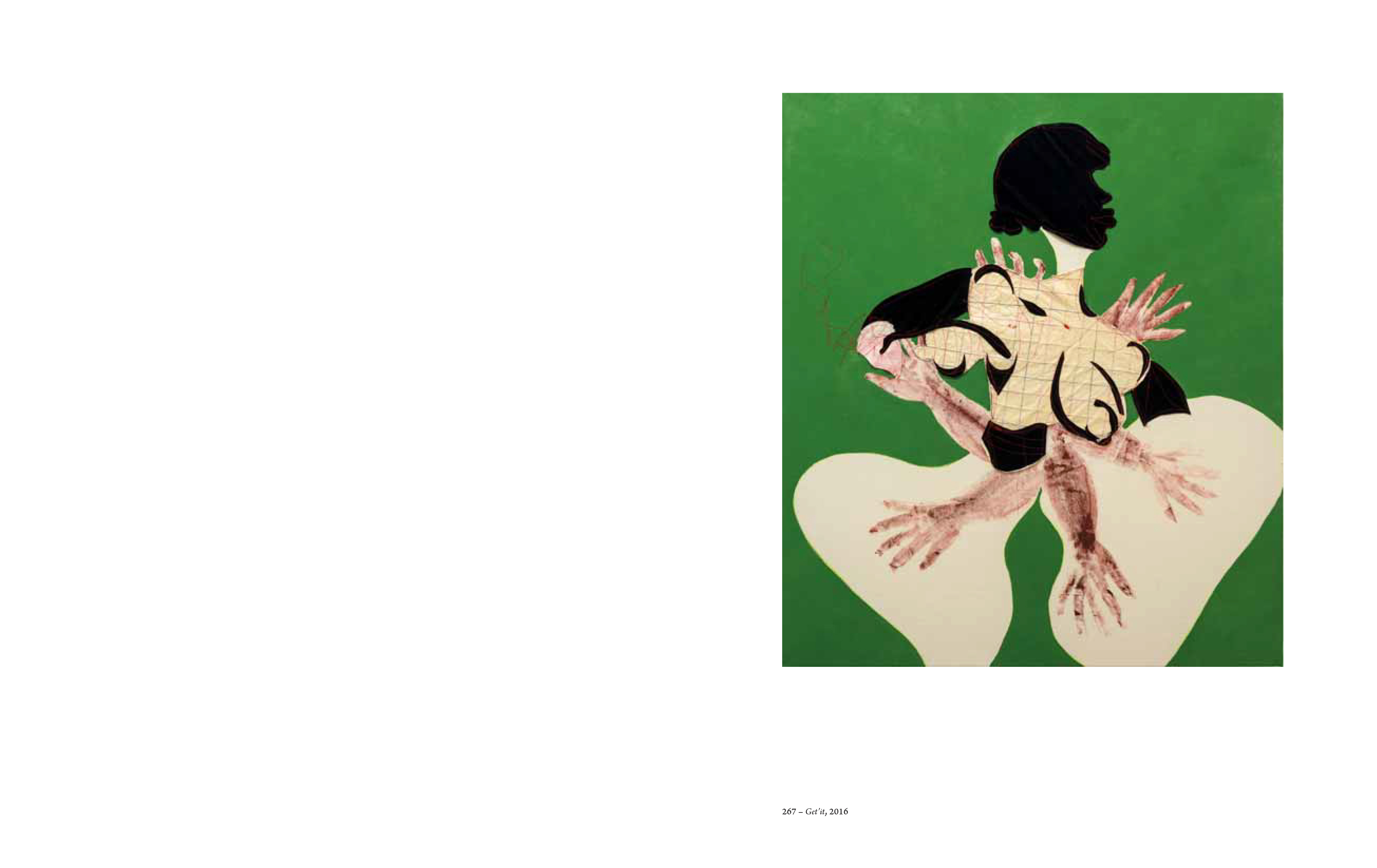 First monograph of the African-American artist, renowned for her representations of black femininity, whose spectacular pop patchworks deconstruct and recompose the everyday feminine/masculine relationship in its domestic dimension: an overview of Tschabalala Self's production, with seven essays and an interview.