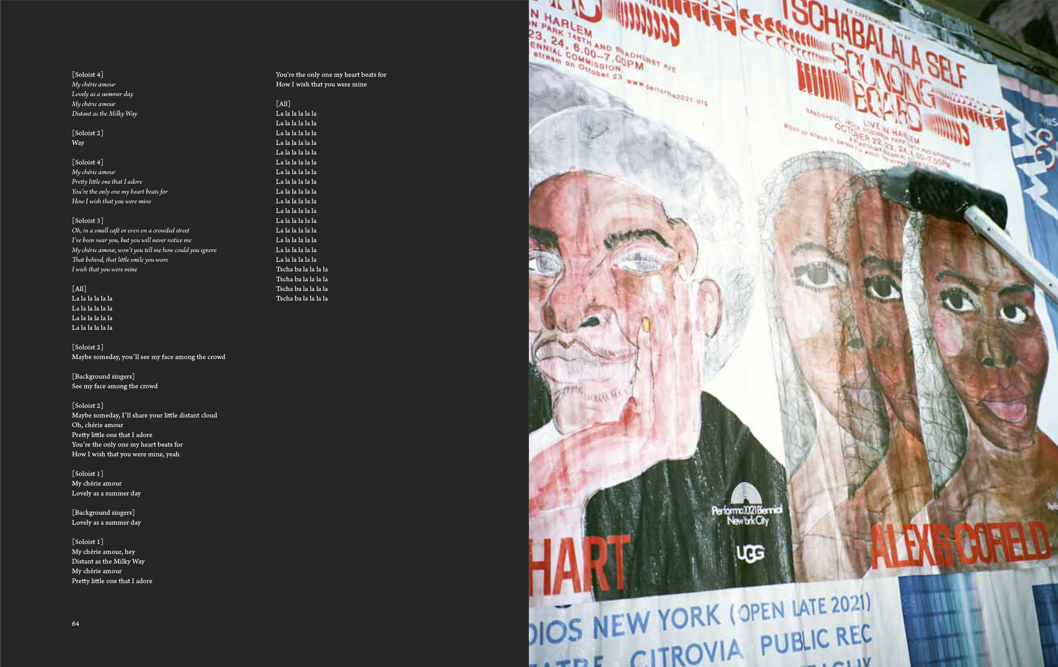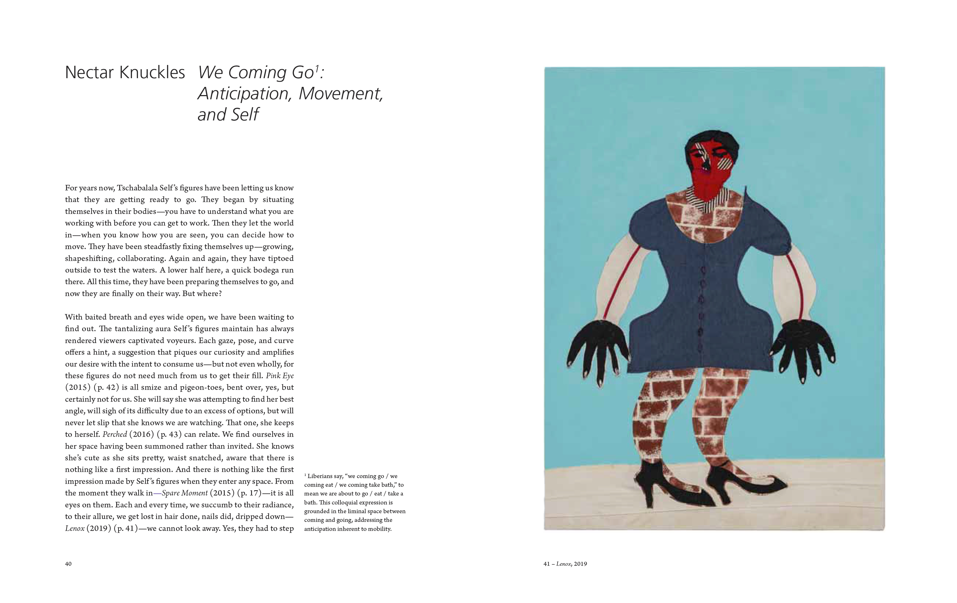 Texts by Ferren Gipson, Sayida Lovely Self, Gianni Jetzer, Nectar Knuckles, Shanekia McIntosh, Kathy Noble, Sarah Moroz; interview with Tschabalala Self by Seungduk Kim & Franck Gautherot.