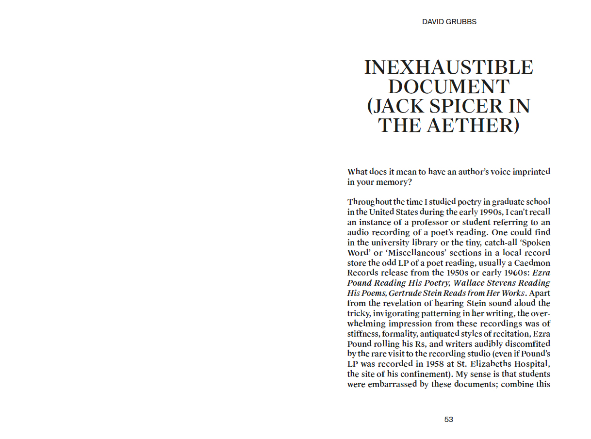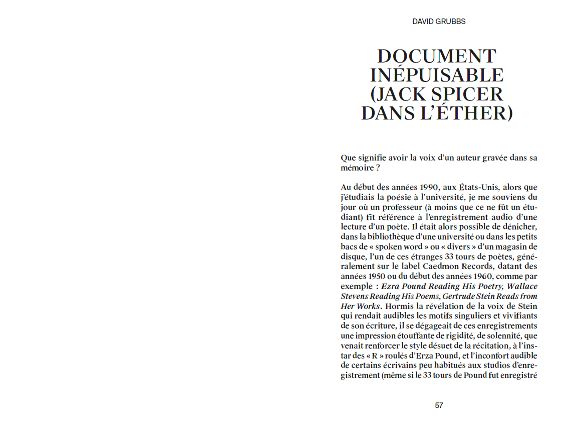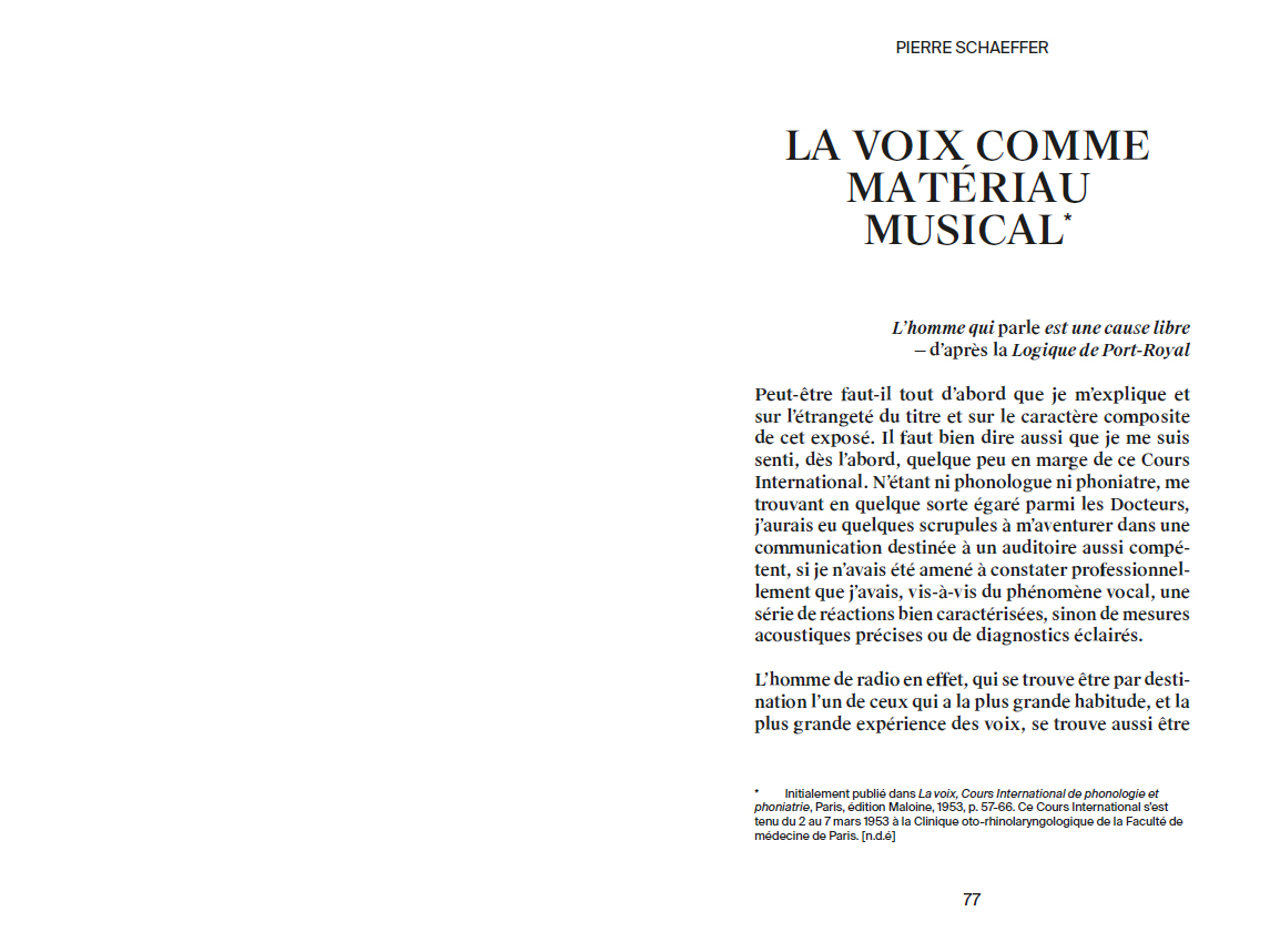 Contributions by Joan La Barbara, Sarah Hennies, Peter Szendy, Youmna Saba, Lee Gamble, Ghédalia Tazartès, David Grubbs, Stine Janvin, Pierre Schaeffer, Akira Sakata, Haela Ravenna Hunt-Hendrix, Yannick Guédon, François J. Bonnet, John Giorno.
