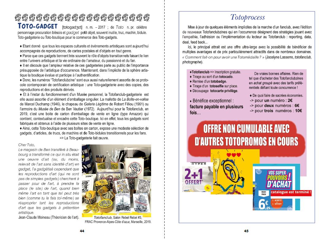 Jean-Claude Moineau, professor of art theory, on the notion of fanclubbing and the installation of the artistic concept of easy-made ("Toto easy-made").
