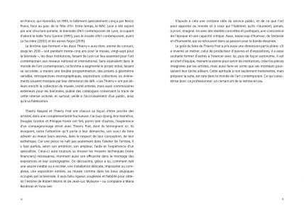 This book retraces Thierry Prat's career as a player and witness to the history of contemporary art in France for over forty years, through a series of interviews that highlight the main issues at stake.