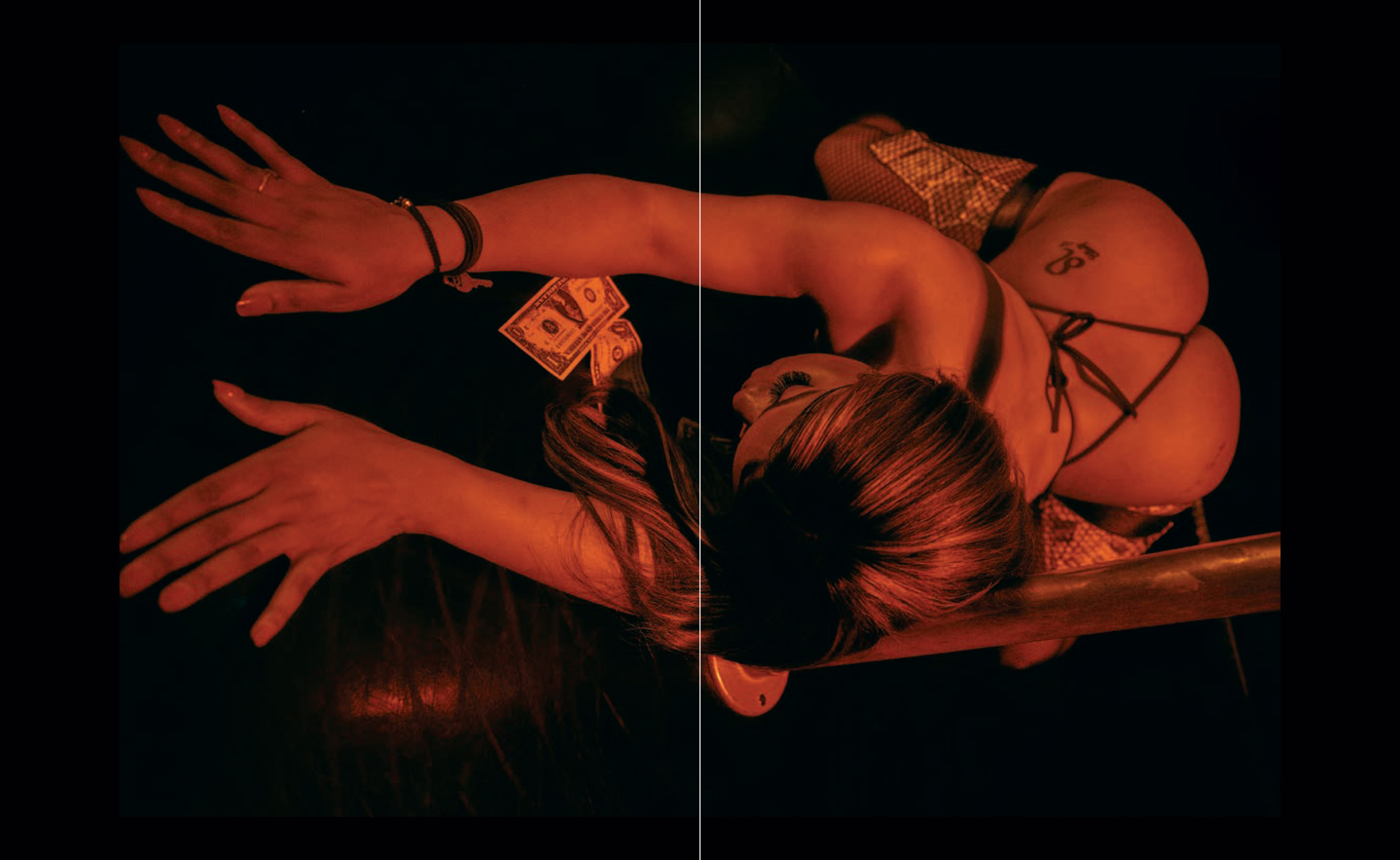 "I wanted these photographs to reflect an enticing, timeless, bold visual style—all while capturing the essence of each entertainer from an empowered, artful perspective. ONYX tells a story in the heat of the moment — lending a true unstaged, behind the scenes look into the lifestyle and emotion present in each dancer's narrative."