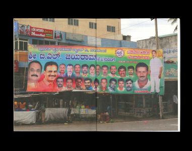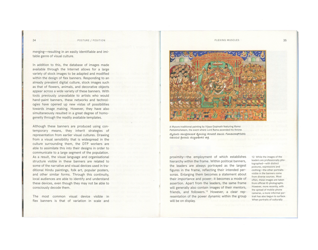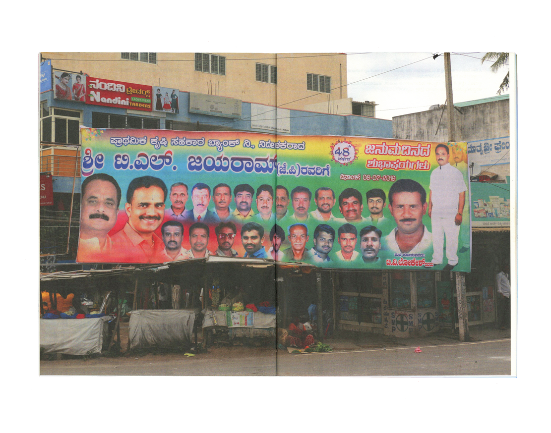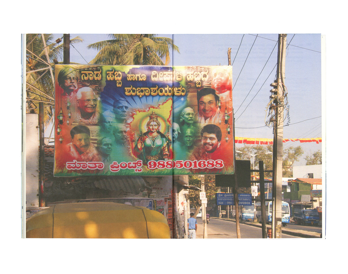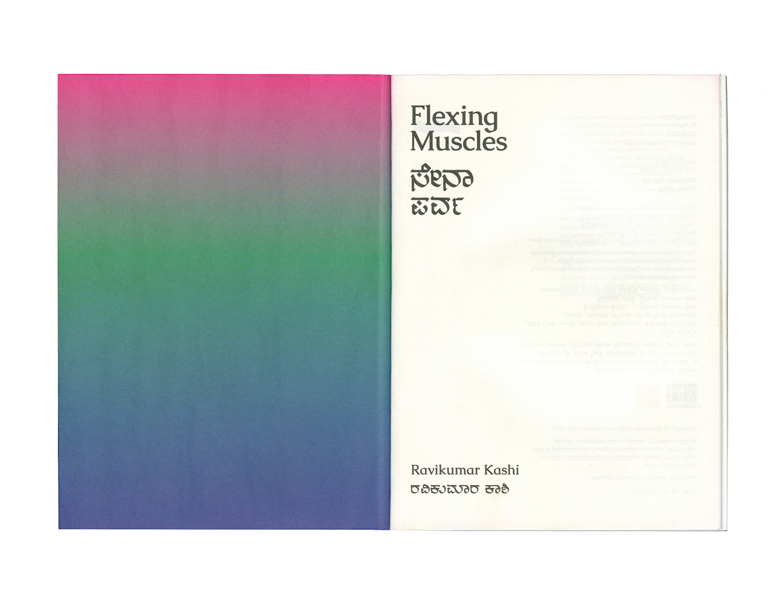 Flexing Muscles brings together an essay in Kannada and English by Ravikumar Kashi reflecting on his observations of the medium, format, and content of these banners. Illustrated with photographs collected by the artist over six years, the essay locates in these banners a portrait of the changing city of Bangalore—one increasingly attuned to aggression and vulnerability.