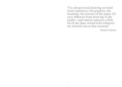 In 100 Hotel Sketches Daniel Arsham compiles 100 drawings made over the last few years as Arsham has travelled for exhibitions and installations worldwide.