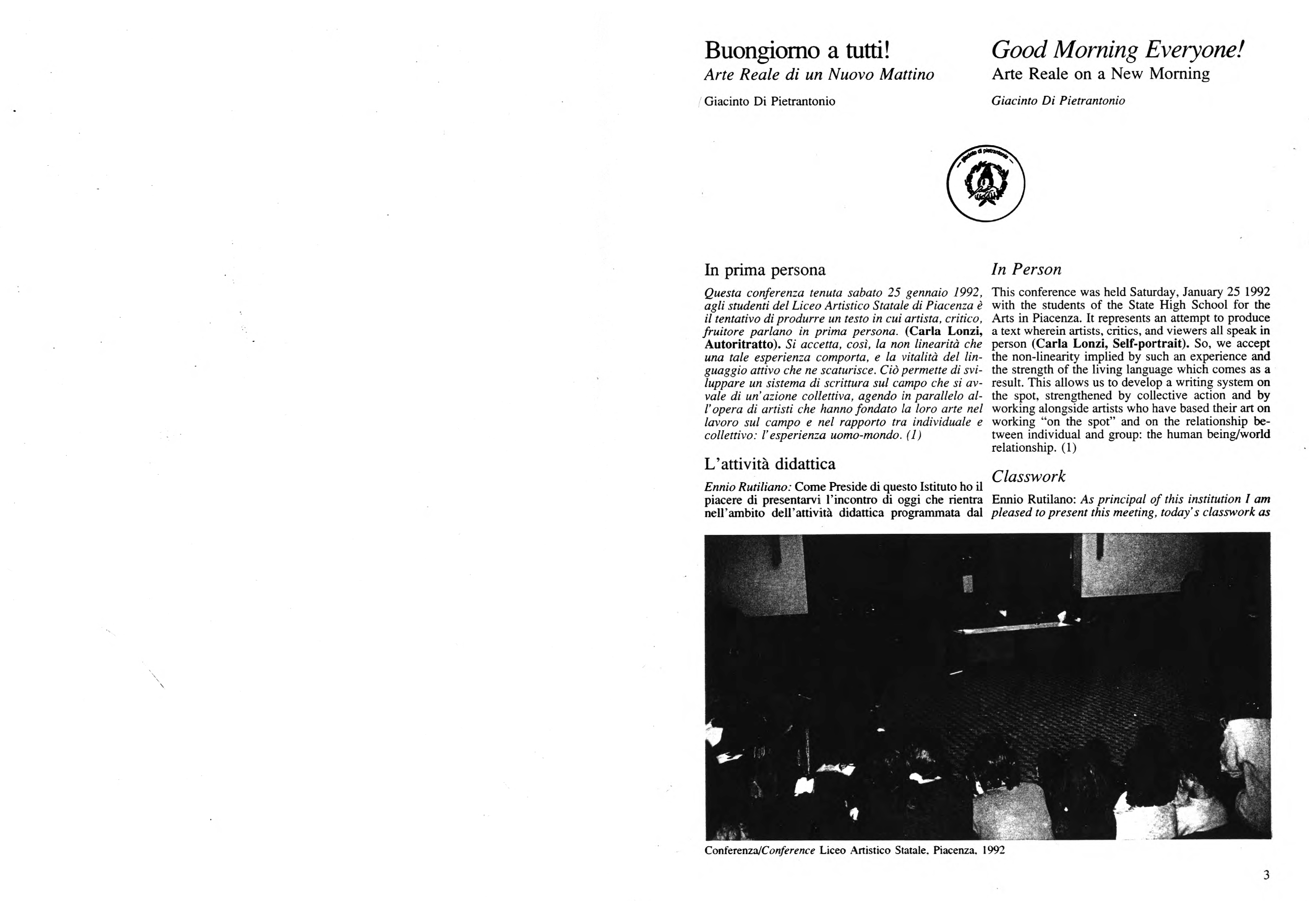 Contributions by Mario Airò, Vincenzo Buonaguro, Saretto Cincinelli, Giacinto Di Pietrantonio, Matteo Donati, Stefano Dugnani, Elio Grazioli, Anthony Iannacci, Dimitris Kozaris, Giuseppina Mele, Chiyoko Miura, Liliana Moro, Marco Paternostro, Frank Perrin, Andrea Rabbiosi, Sergio Risaliti, Bernhard Rüdiger, Antonello Ruggieri, Adriano Trovato, Massimo Uberti, Giorgio Verzotti, Angela Vettese.