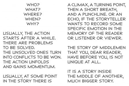 Who is the Middleman? A viewer? An author who mediates between the world of ideas and the material world by creating drawings, sculptures, and texts? A simplified and symbolic puppet that can be moved by various forces?