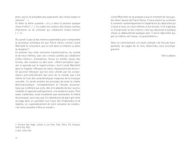 Lionel Marchetti offers a highly personal, artist-to-artist reading of one of Pierre Henry's landmark works, a mysterious and improbable monolith in his repertoire, through which he attempts to grasp all the poetic issues at stake in the art of musique concrète, and to identify the specificities of the genre.