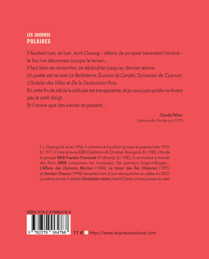 Reissue of a book of poetry from 1984—perhaps F.J. Ossang's most incandescent poetic period—that never saw the light of day.