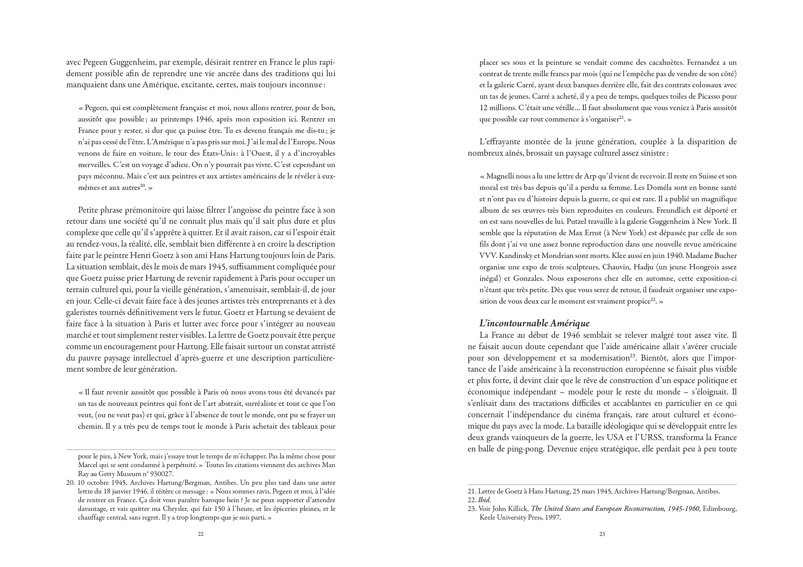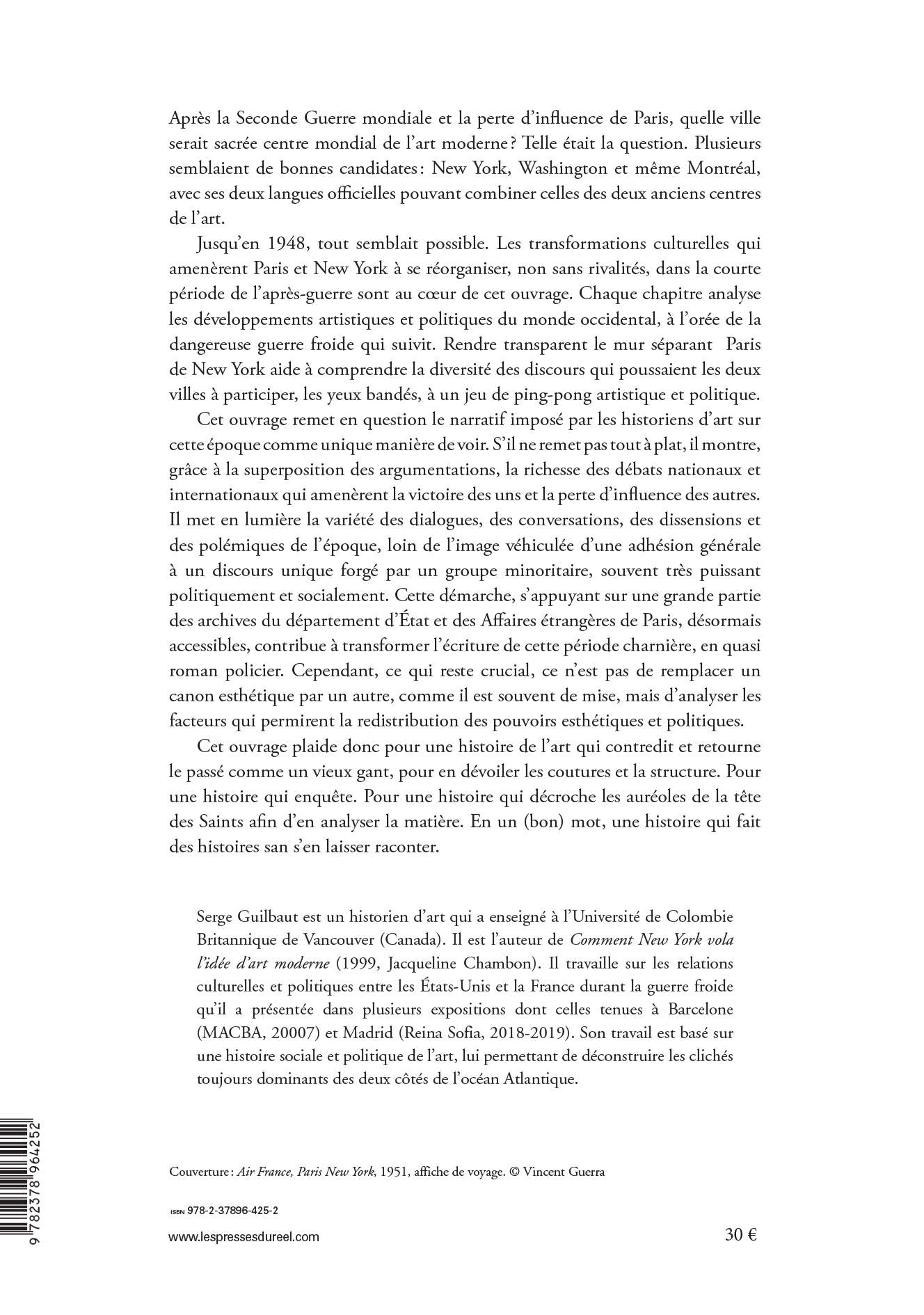 A genuine investigation, in the opposite direction to the narrative imposed by art historians, of artistic, cultural and political developments in the Western world after the Second World War, between Paris and New York.