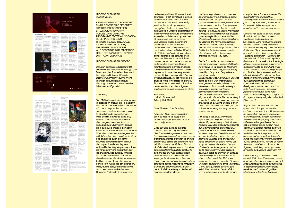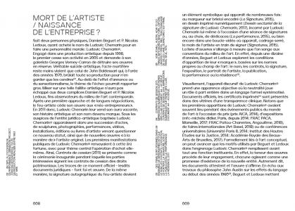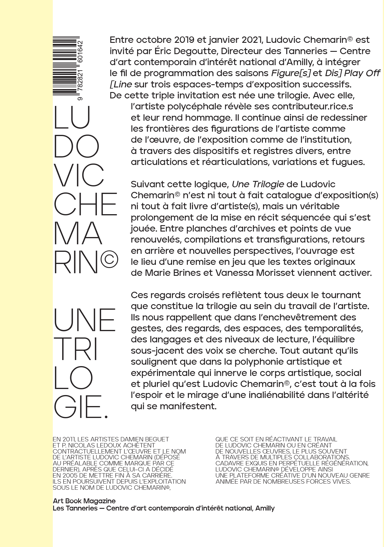 A rethinking of the conceptual approach of Ludovic Chemarin©, artist turned fictional and polycephalous, who continues to redraw the figurative boundaries of the artist and the work, the exhibition and the institution.
