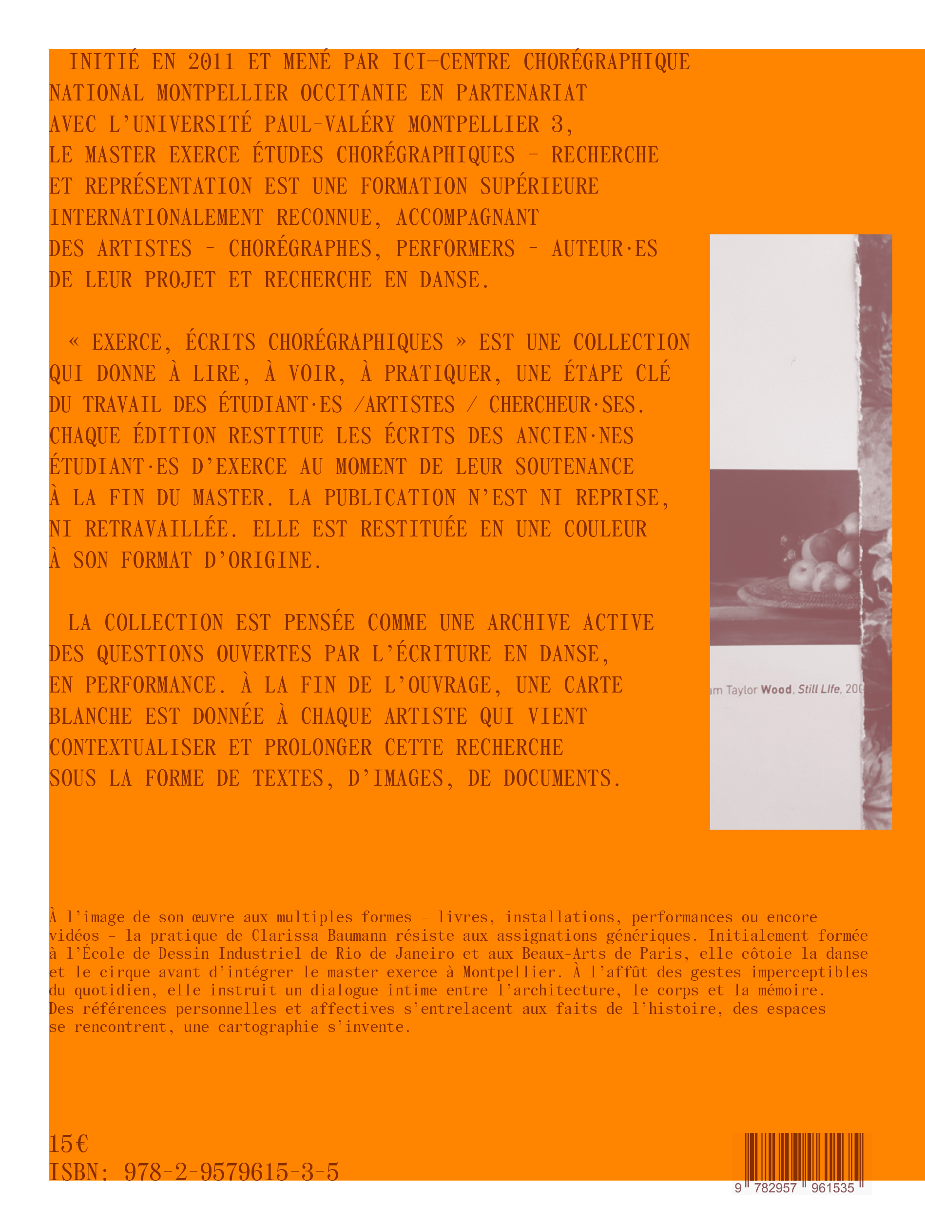 Each edition presents the writings of former Exerce students at the time of their thesis defense at the end of the Master's program. The publication is neither reprinted nor reworked. It is restored in one color to its original format. At the end of the book, each artist is given carte blanche to contextualize and extend this research in the form of texts, images and documents.