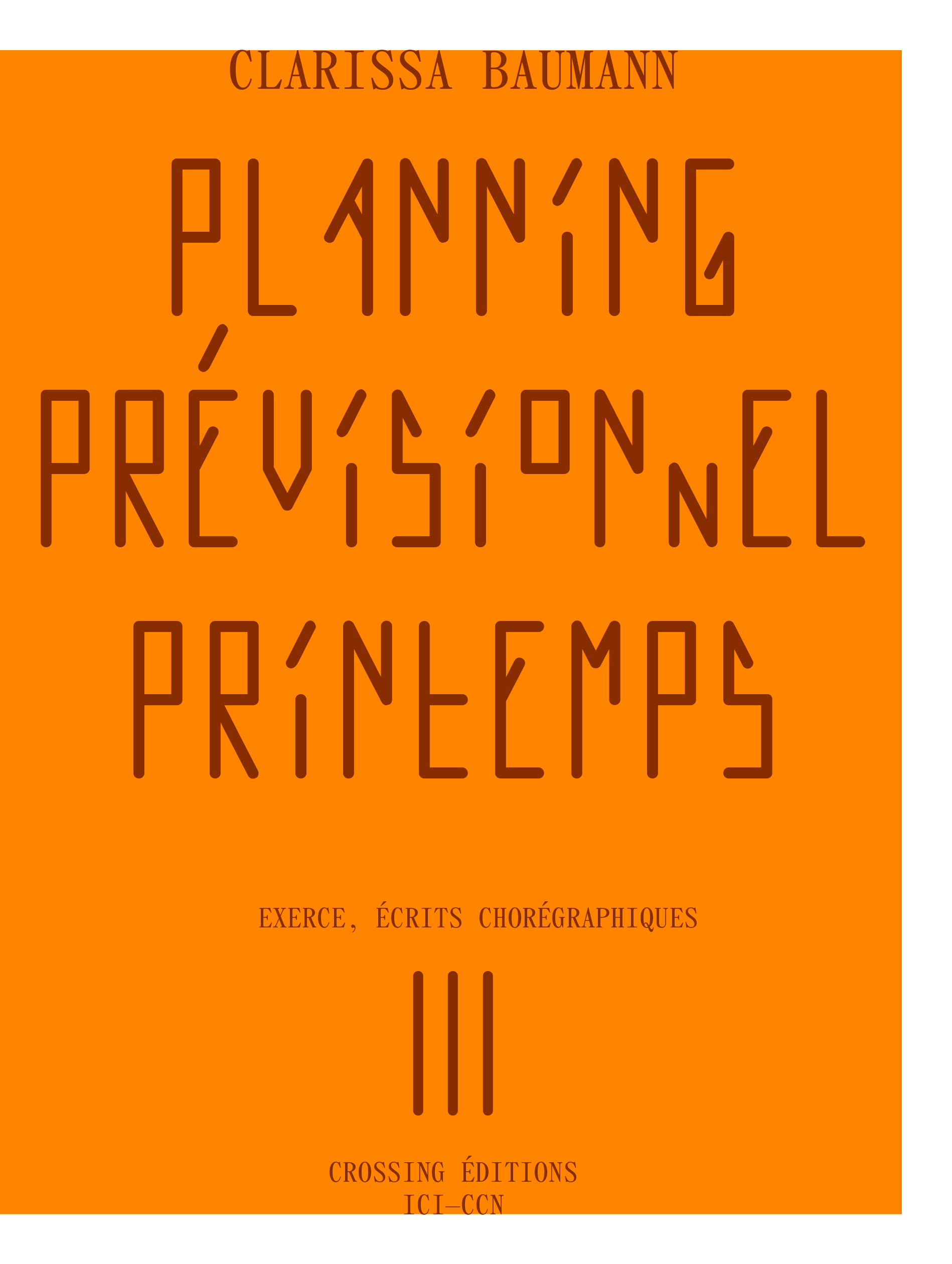 This publication presents research conducted by visual artist and choreographer Clarissa Bauman over two years, in the frame of the exerce MA in choreography and performance (National Choreographic Center of Montpellier / Occitanie). Here, writing becomes movement, a weaving of words, gestures, images, and drawings that rub against each other in a dialogue articulated from page to page.