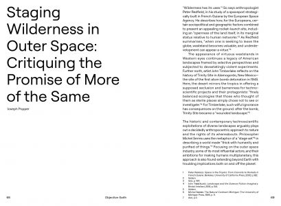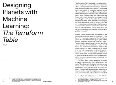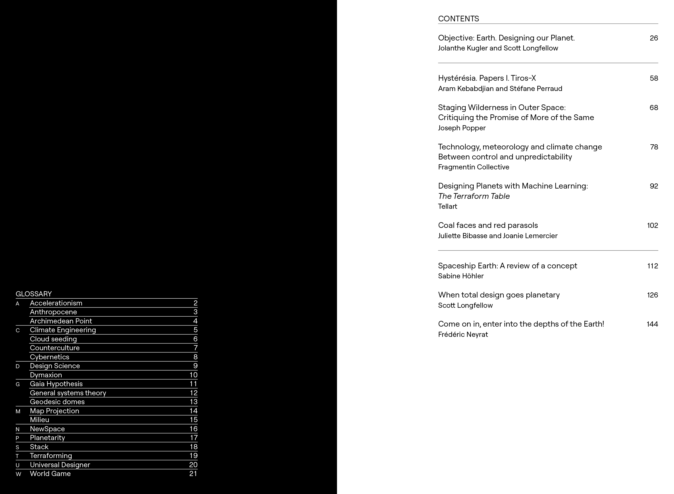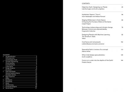 We map the world using cartography, we shape it with spatial planning. We model the planet to predict natural phenomena and try to influence it through climate control. This book focuses on a posture that has existed since the first human settlements, that gained pace with the scientifi c breakthroughs of the Age of Enlightenment and, in step with industrial revolutions, was furthered by a techno-scientific vision: to see the planet as designable. Designers, artists, and researchers investigate this "becoming object" of planet Earth.