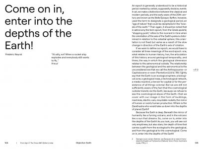 Artists, designers and researchers investigate the "becoming object" of the Earth, in the face of the techno-scientific vision and geo-engineering projects that tend to turn our planet into a design object.