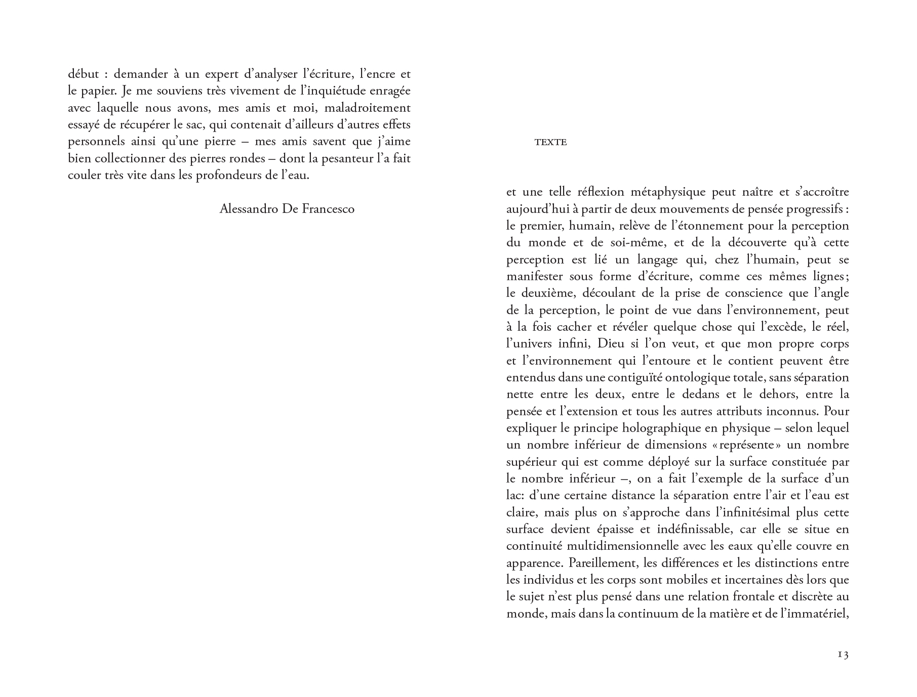 ) whose prose, oscillating between poetry, philosophy and conceptual art, ingenuously explores the great unresolved questions of humanity and nature.