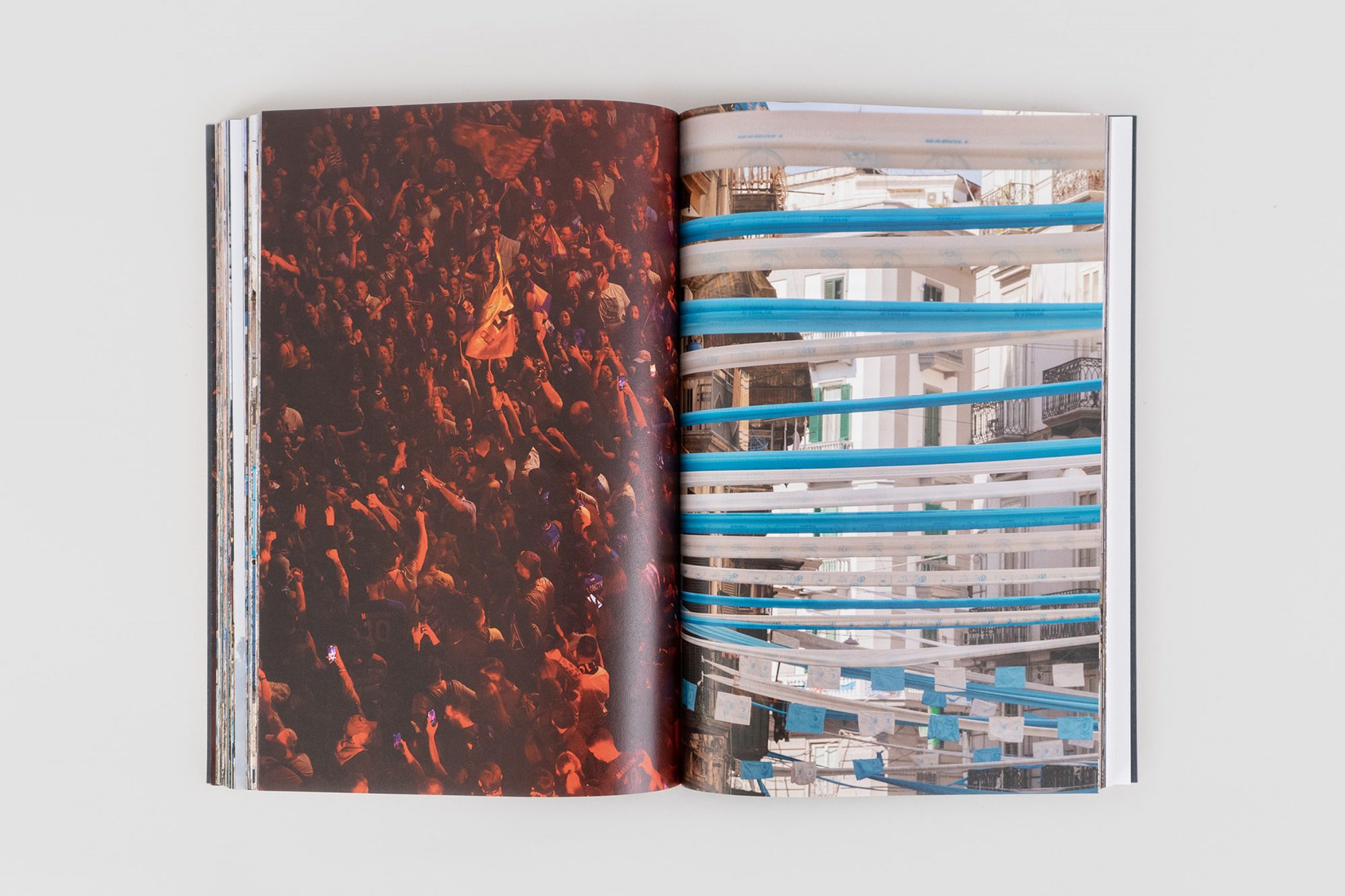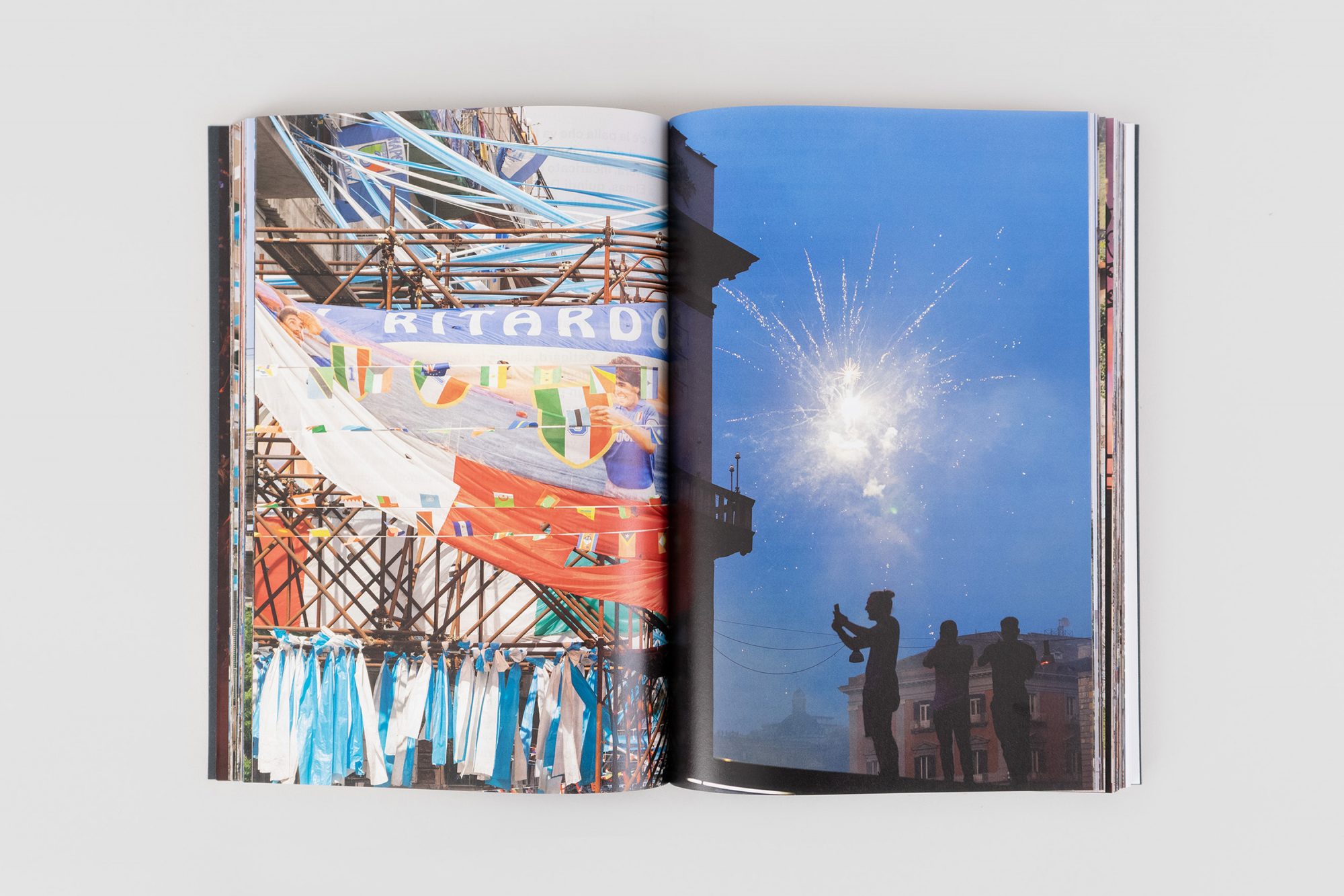 An anthropological and costume study, a photographic research on urban architectures, and an artistic reflection on a historical event converge in the book Giovanna Silva has created for the Madre Museum. Silva moves within all these diverse realms, and the result is greater than the sum of its constituent parts. With a deep understanding of Neapolitan urban planning and its historical context, the artist tirelessly traversed the city, portraying it with a composed approach that is less inclined to celebrate excess or isolated incidents. What Silva chose to showcase primarily revolves around the concept of accumulation: the quantity of enthusiastic decorative forms that have transformed the chromatic landscape of Naples as a whole, the horror vacui. Her shots, taken during the most vibrant, intense celebration days, do not soften the present and future of the depicted locations, nor do they domesticate them into stereotypes.