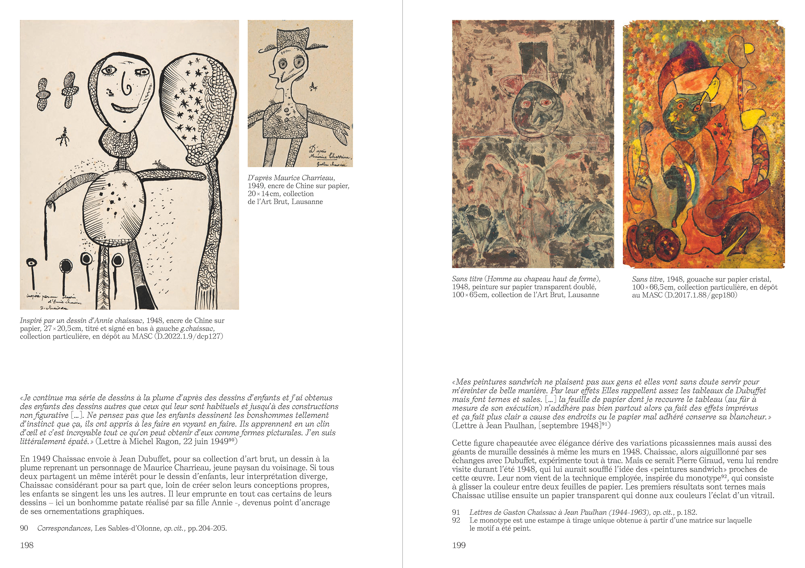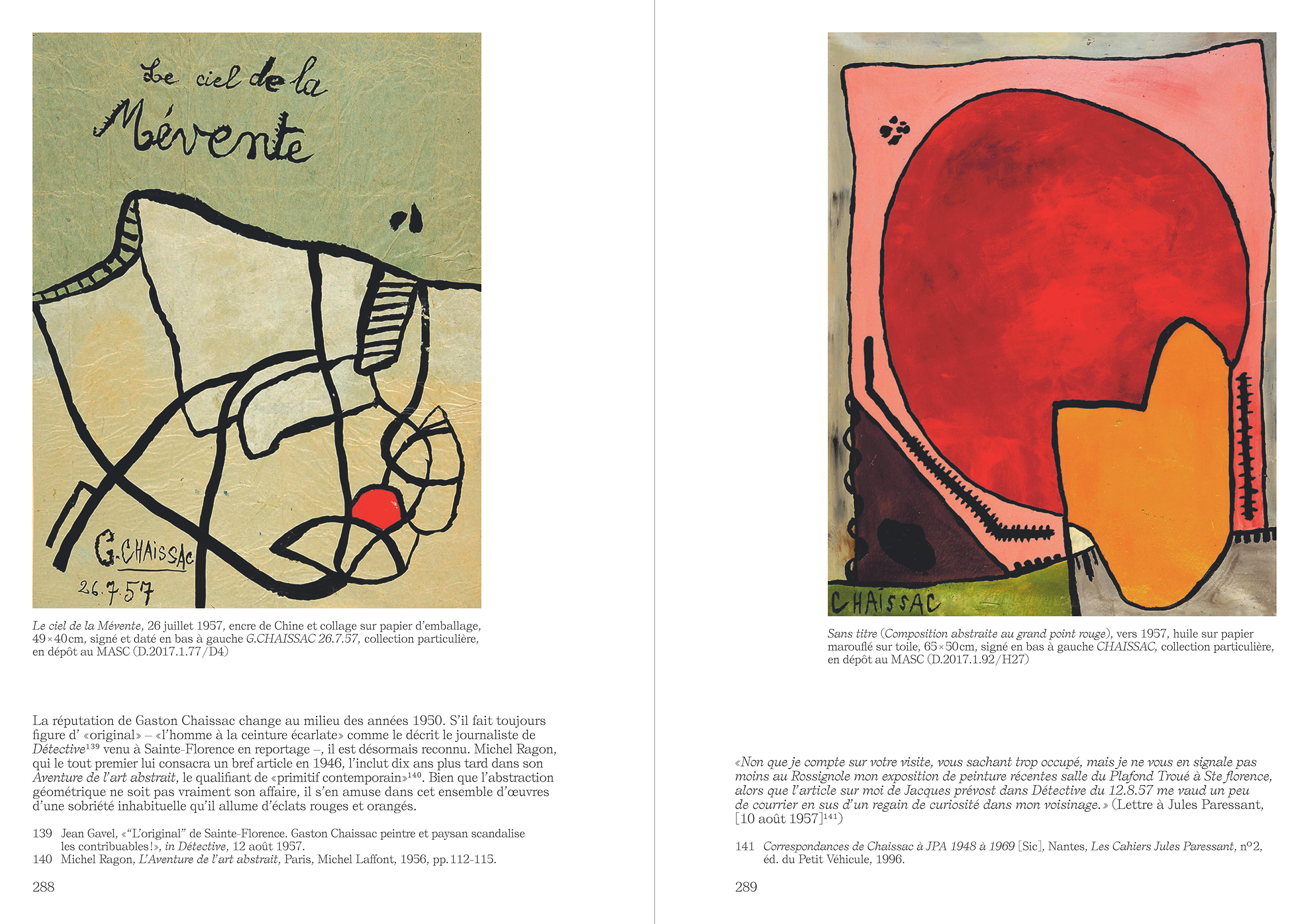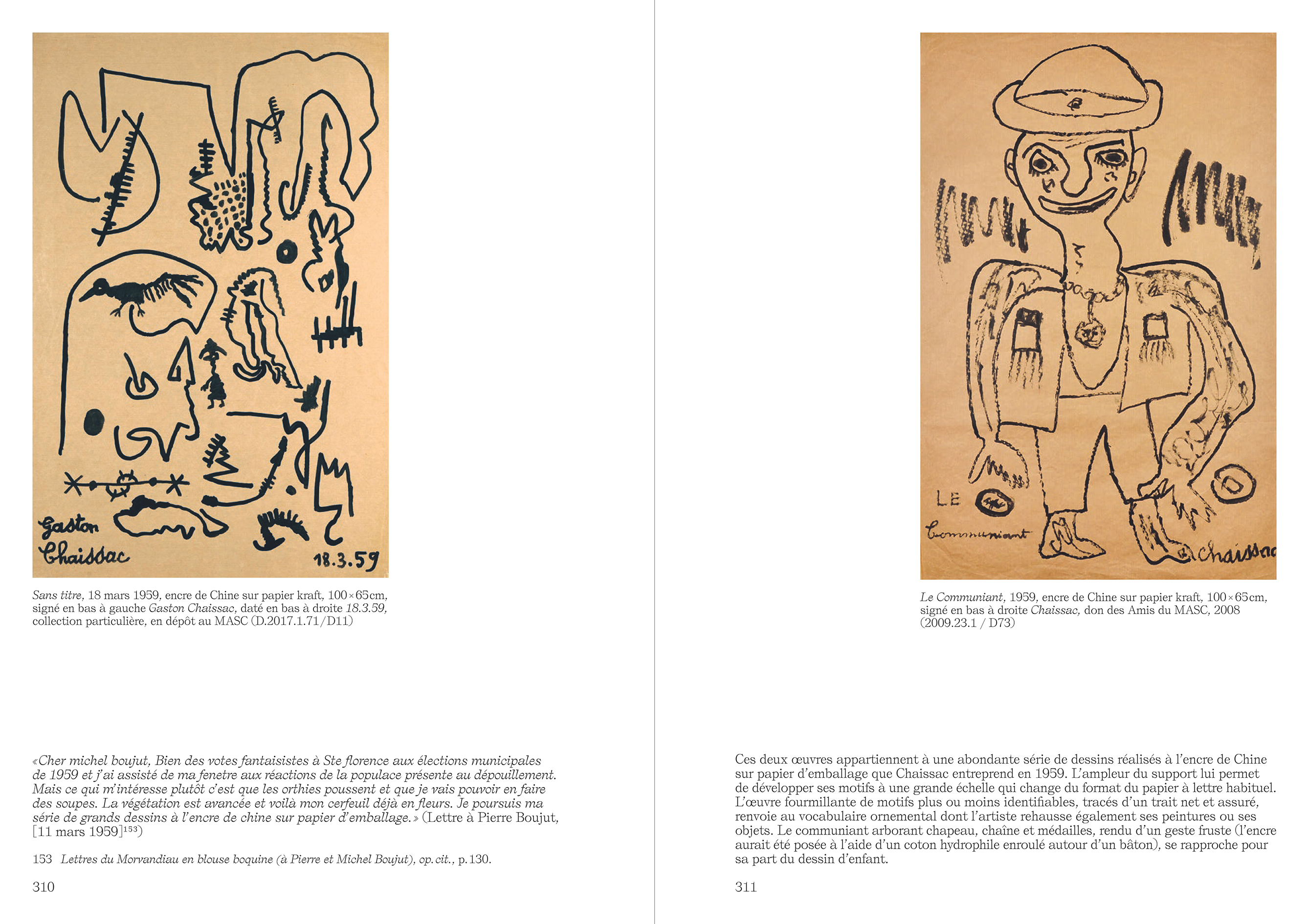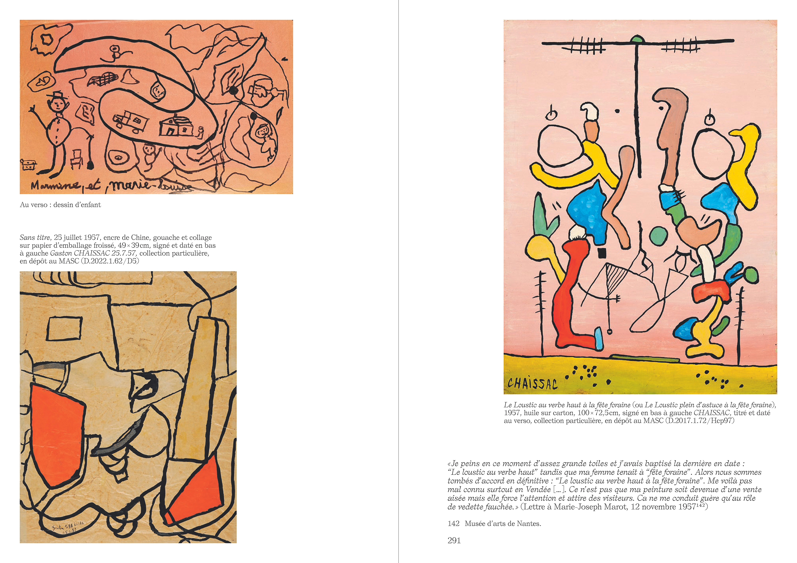 This monograph, taking a thematic approach that brings together both words and objects, aims to highlight the extreme inventiveness of Gaston Chaissac, an artist who managed to transform the most mundane themes and materials into "state-of-the-art fetishes", dandies, masks, totems and other "absurdities" and "lucky finds", which helped to breathe new life into the artistic idiom of the post-war era by embracing whimsy and spontaneity.