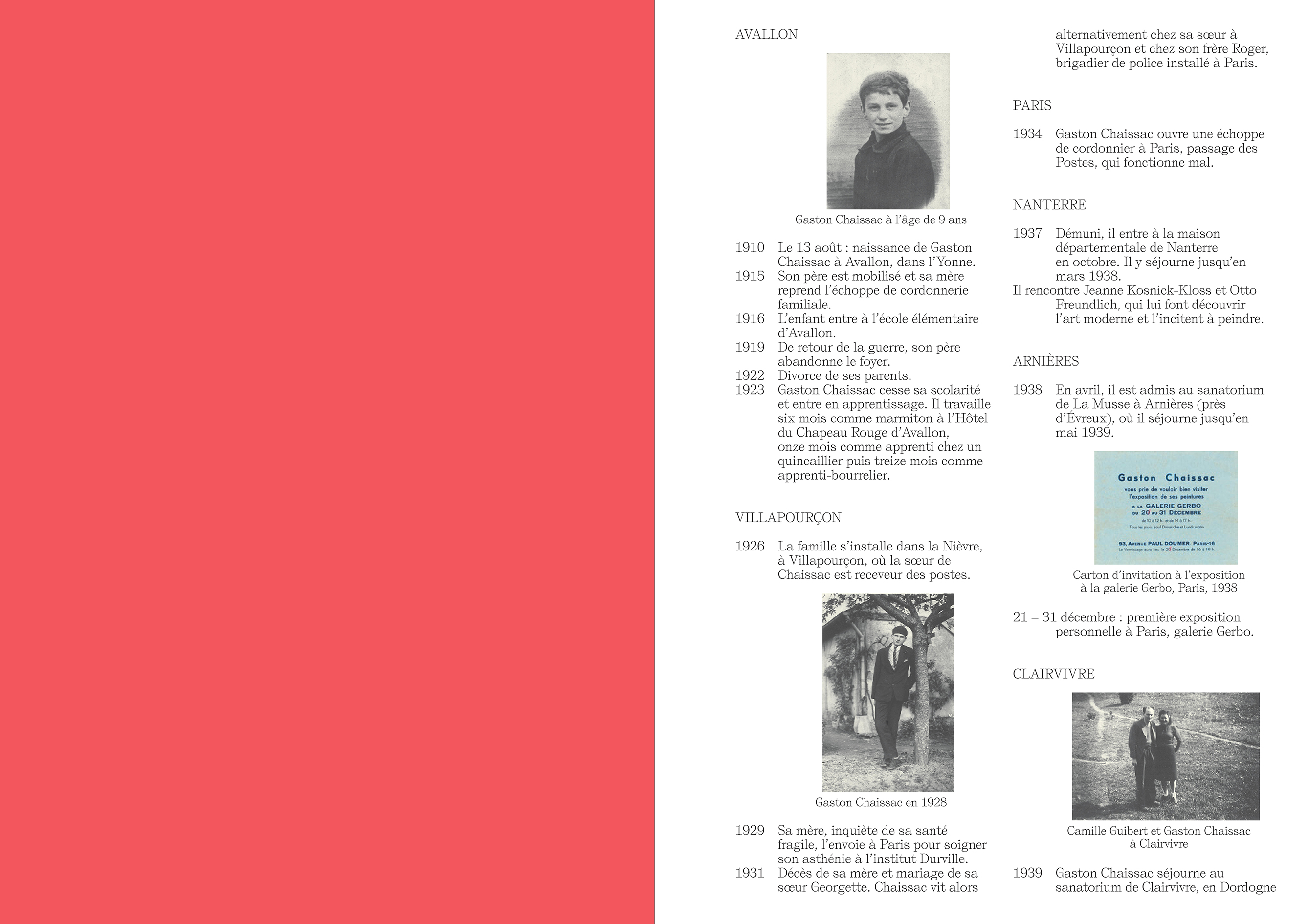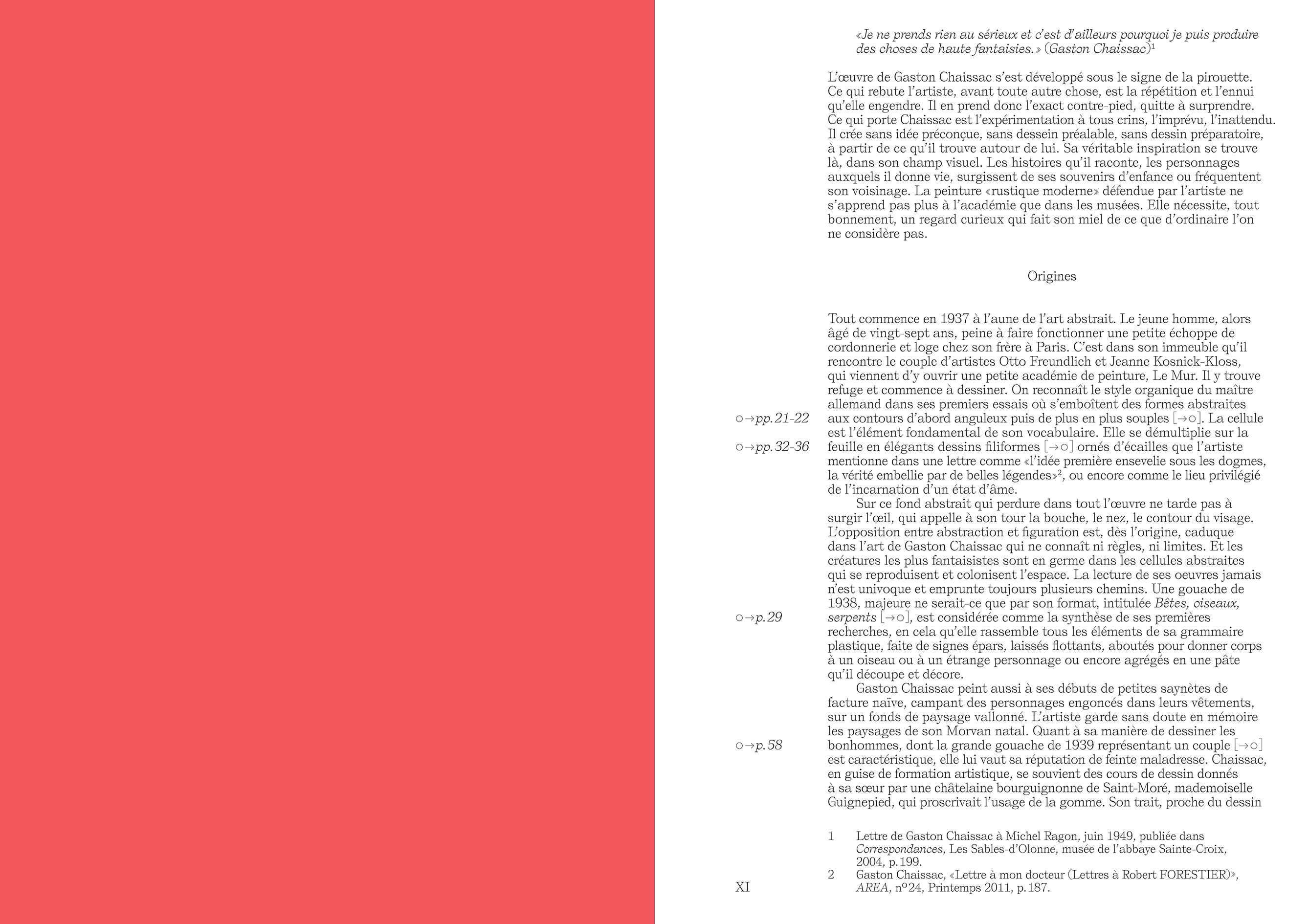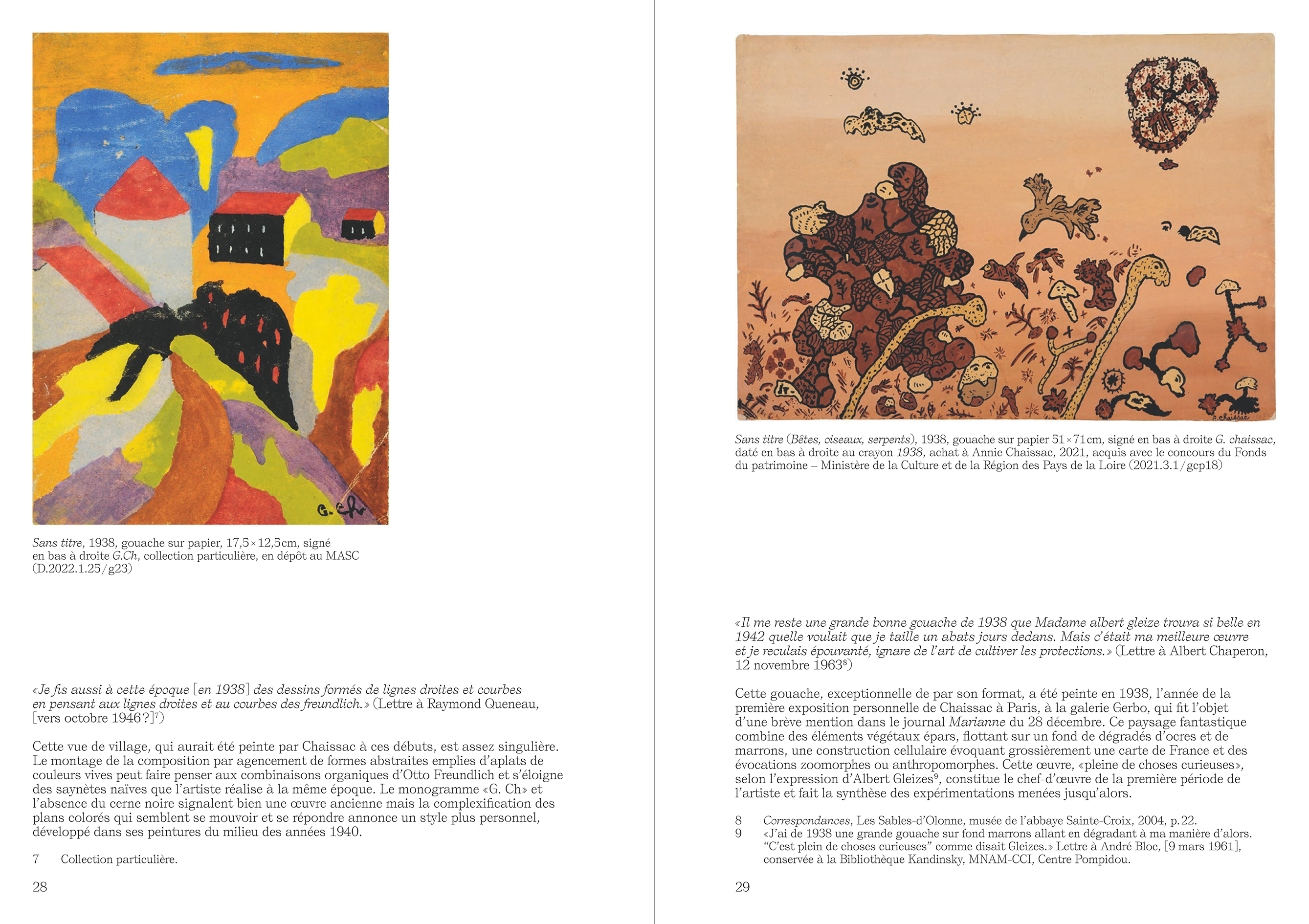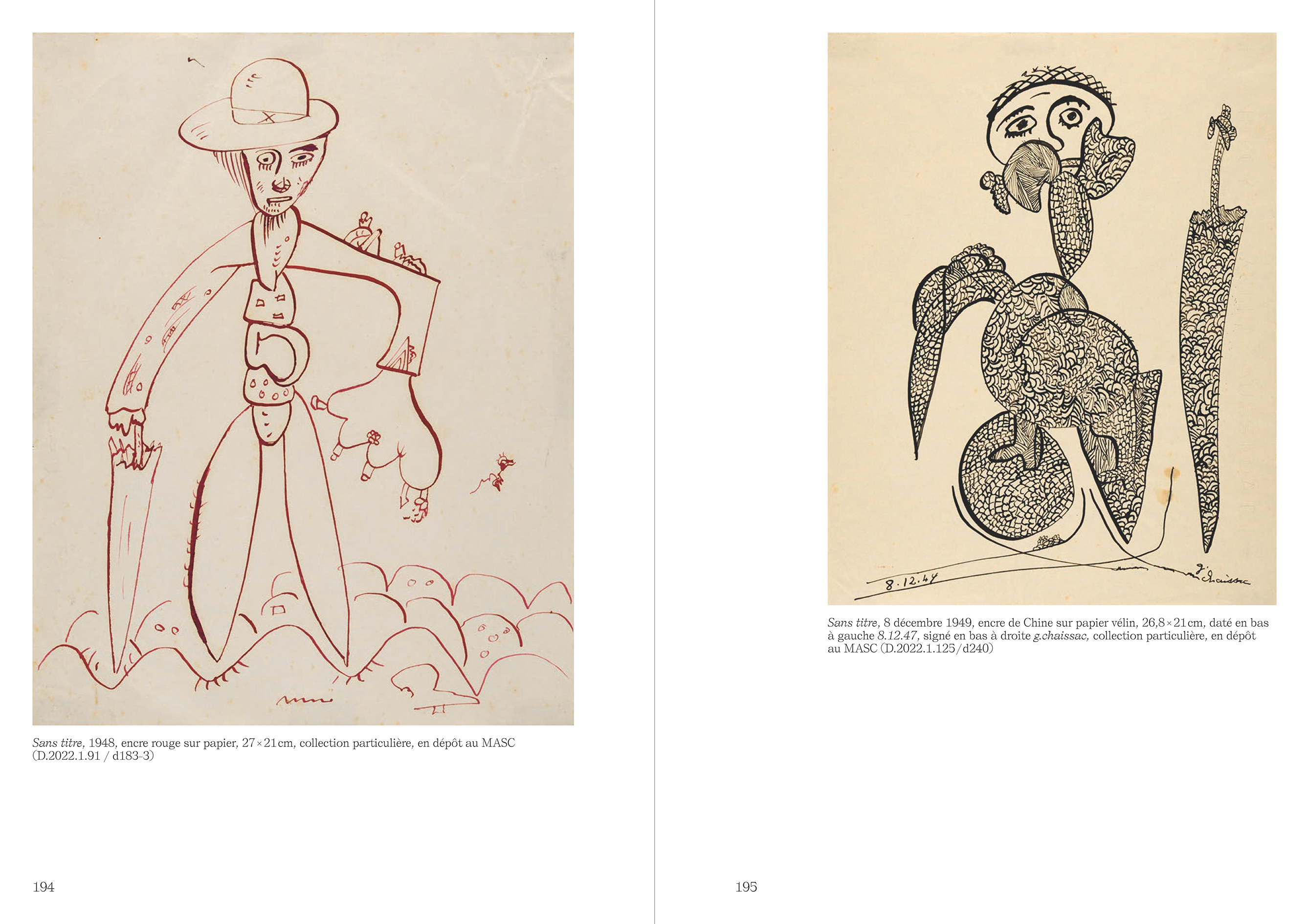This monograph, taking a thematic approach that brings together both words and objects, aims to highlight the extreme inventiveness of Gaston Chaissac, an artist who managed to transform the most mundane themes and materials into "state-of-the-art fetishes", dandies, masks, totems and other "absurdities" and "lucky finds", which helped to breathe new life into the artistic idiom of the post-war era by embracing whimsy and spontaneity.