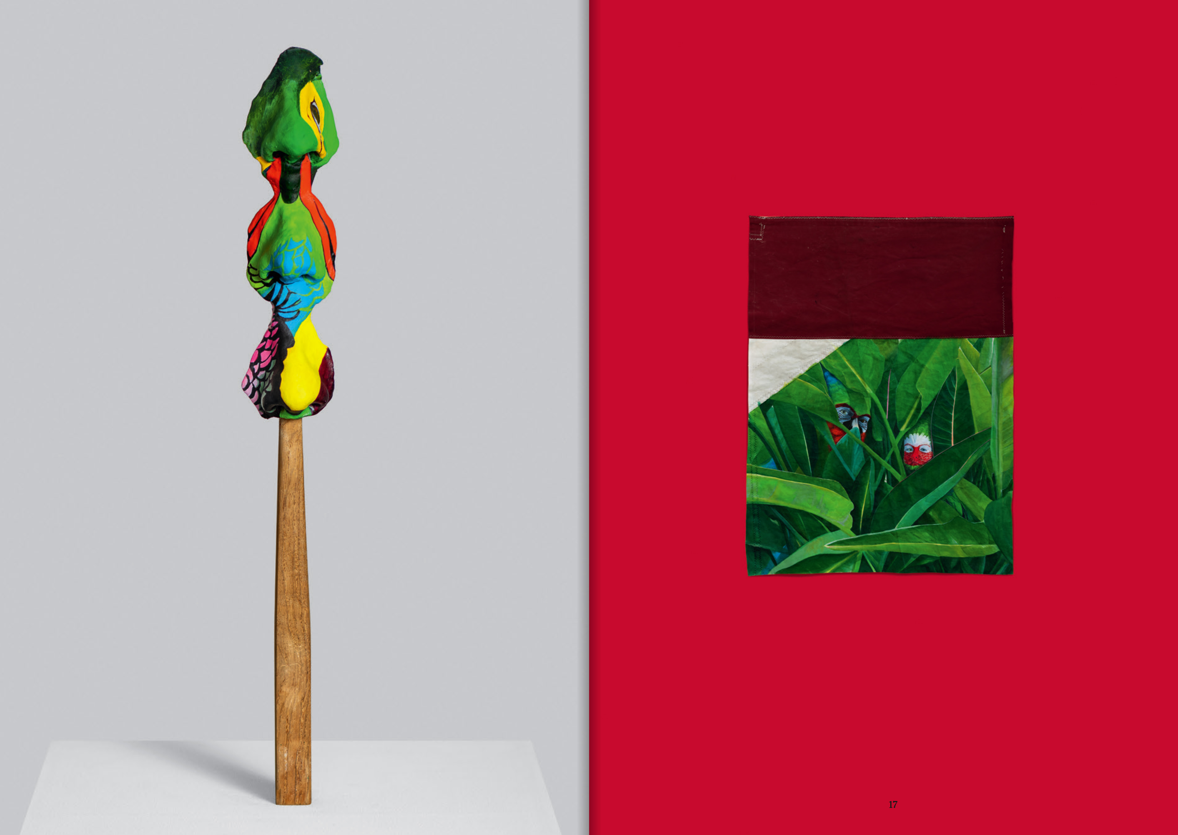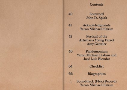 Yaron Michael Hakim: Psittaciformes is a vibrant 104-page publication featuring 34 full-color spreads, a foreword by John D. Spiak, GCAC Director/Chief Curator, text by poet Amy Gerstler, and a conversation between artist Yaron Michael Hakim and former LACMA Curator and current MoCA Senior Curator José Luis Blondet. The book comes with a flexi disc of flute recordings.