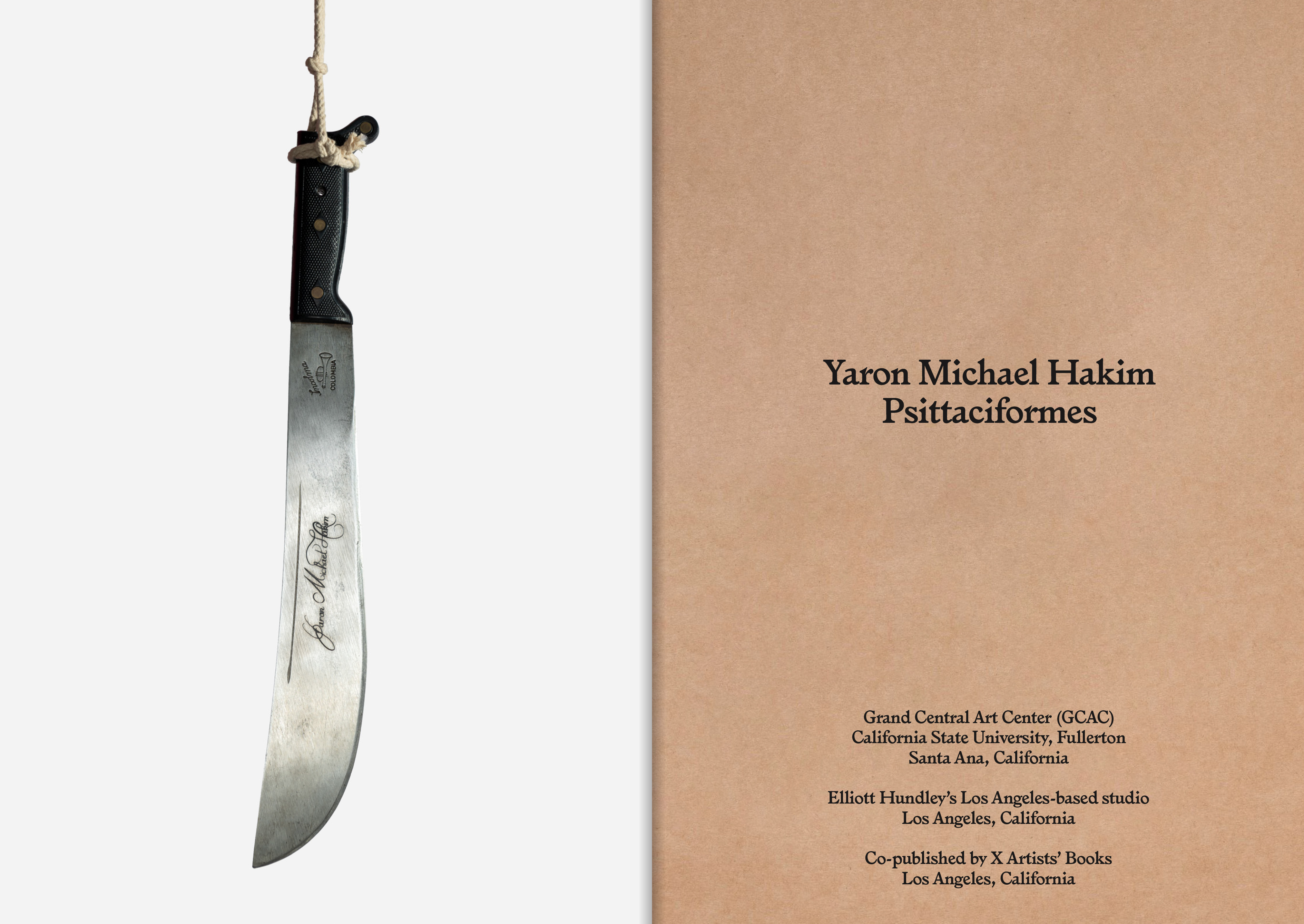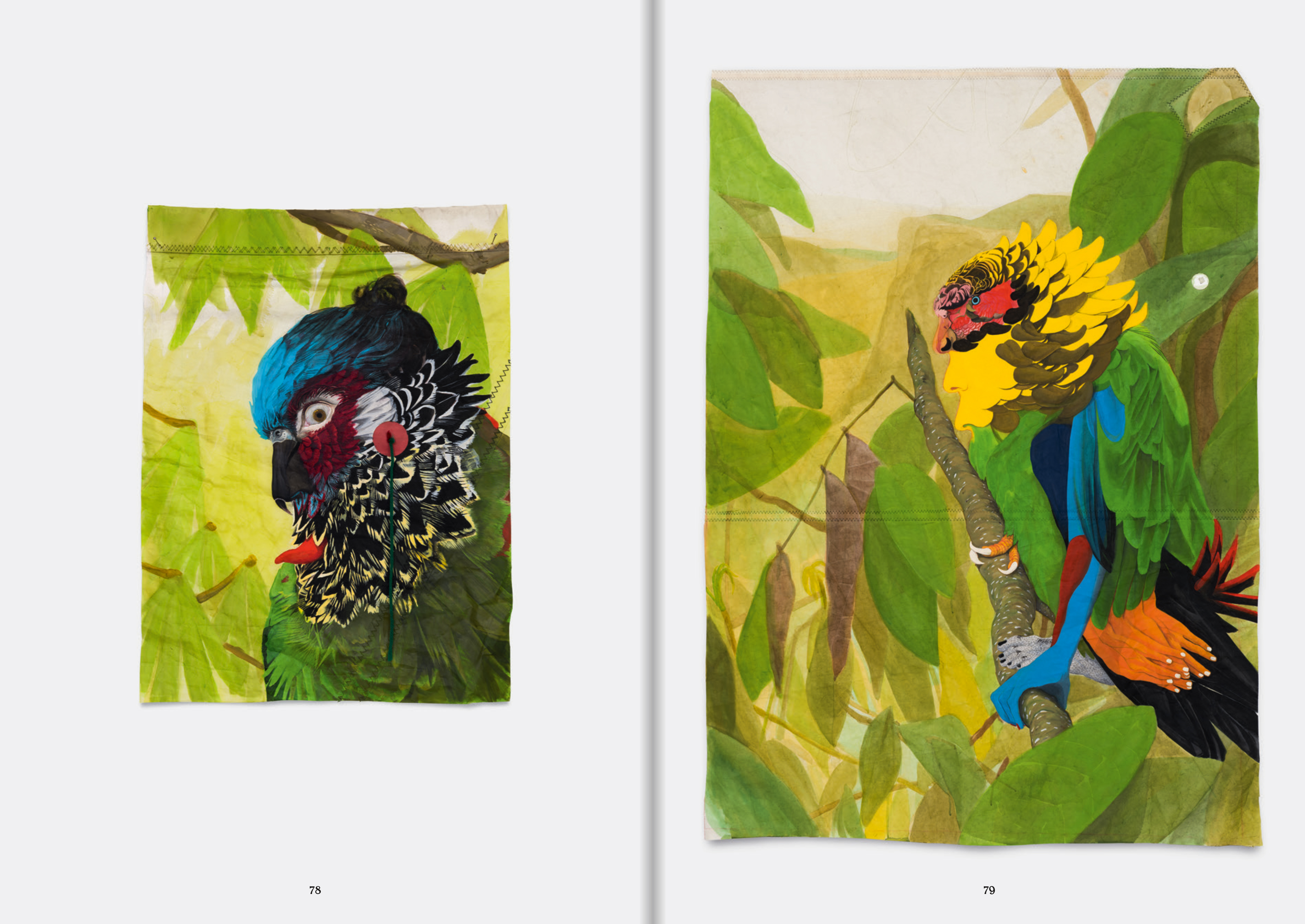 Monograph devoted to Yaron Michael Hakim's Psittaciformes body of work, drawing inspiration from the migratory nature of parrots and their ability to assimilate. Through bold paintings on used Dacron sailcloth, Hakim uses this subject matter to explore his own relationship with assimilation, living between cultures, and the exoticization of his heritage.