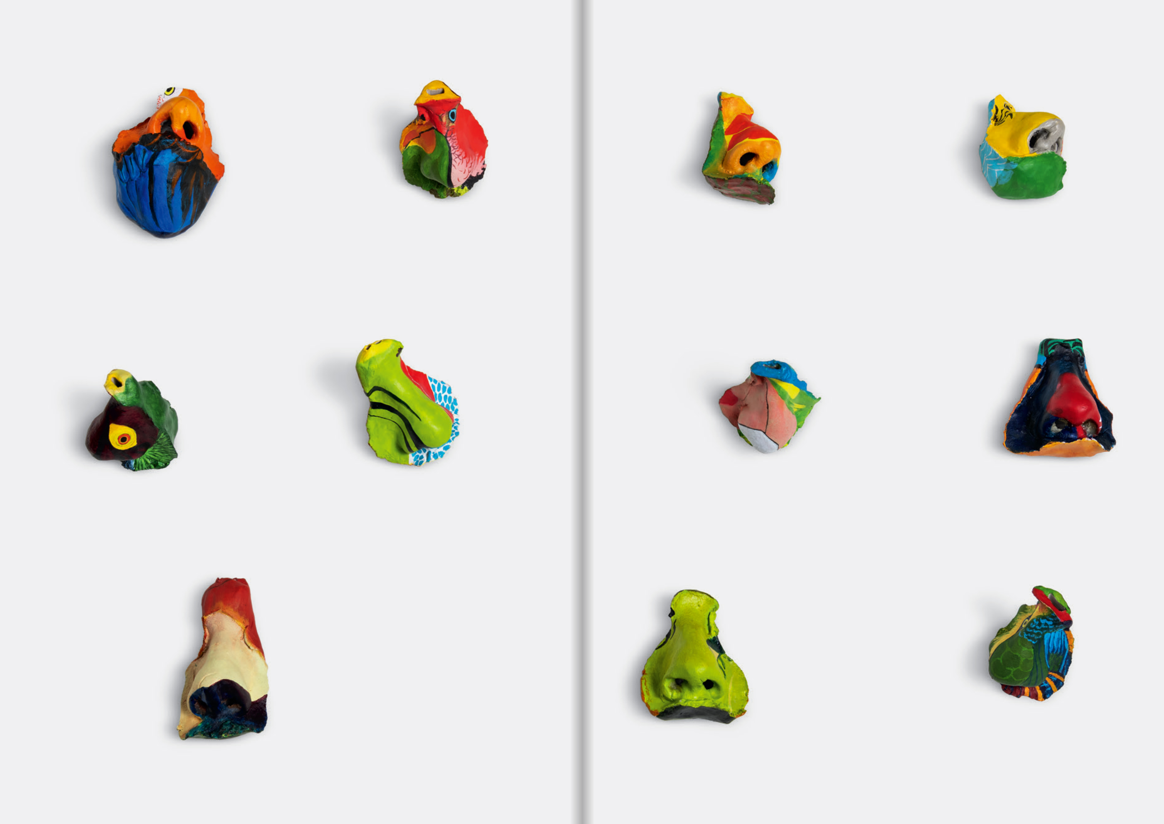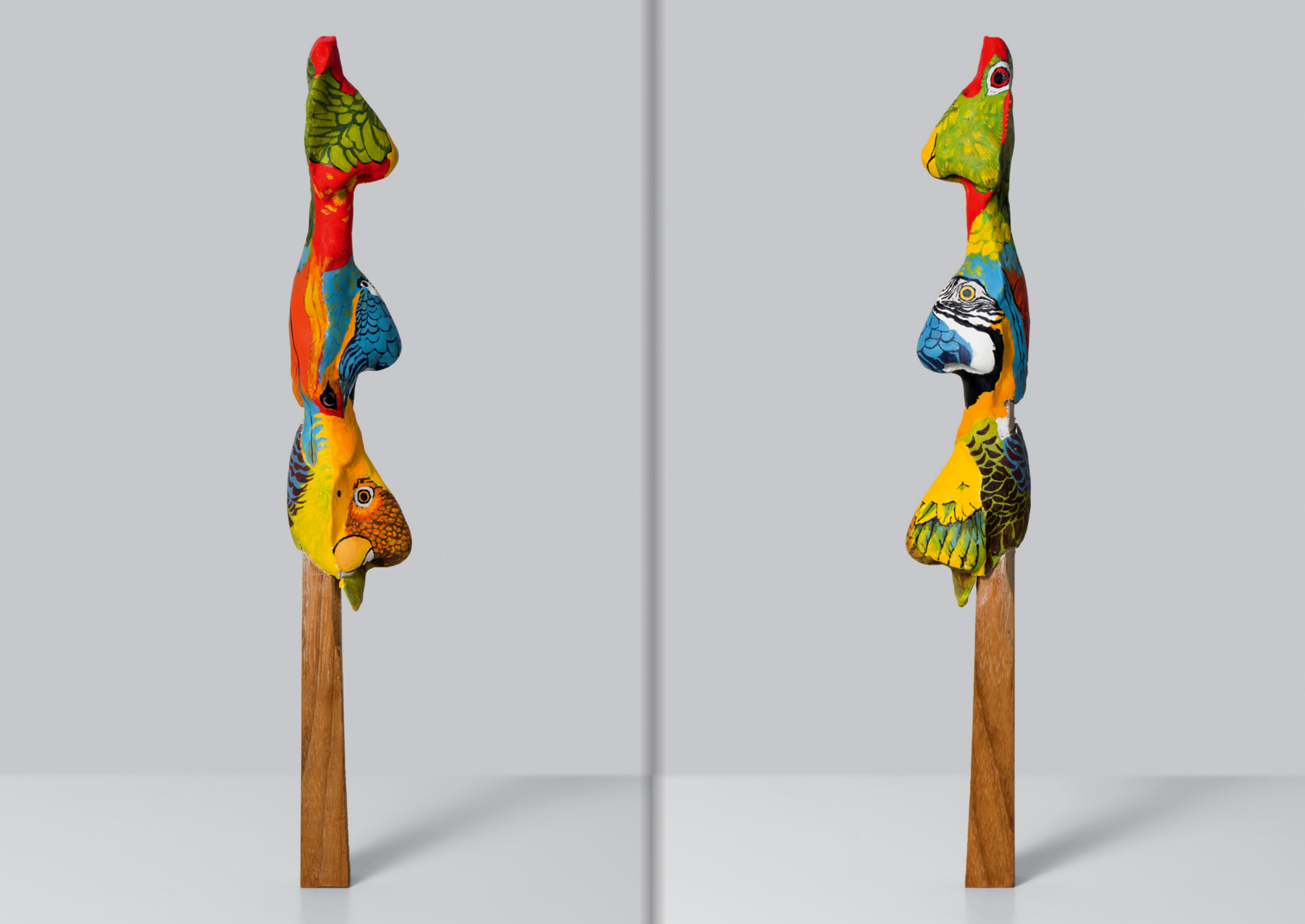In his  body of work Psittaciformes, Yaron Michael Hakim has adopted the formal approach of naturalist illustration to depict imagined anthropomorphic creatures. Through these paintings, he examines his South American heritage and the kind of exoticization that has been projected onto him and that he has, in turn, projected onto himself.