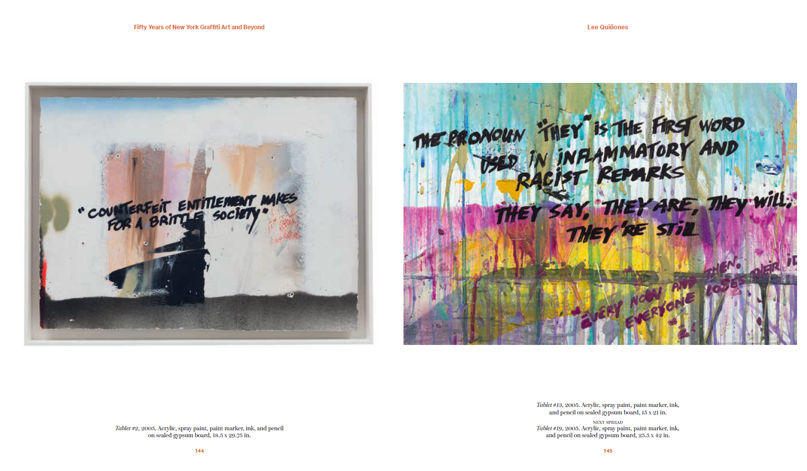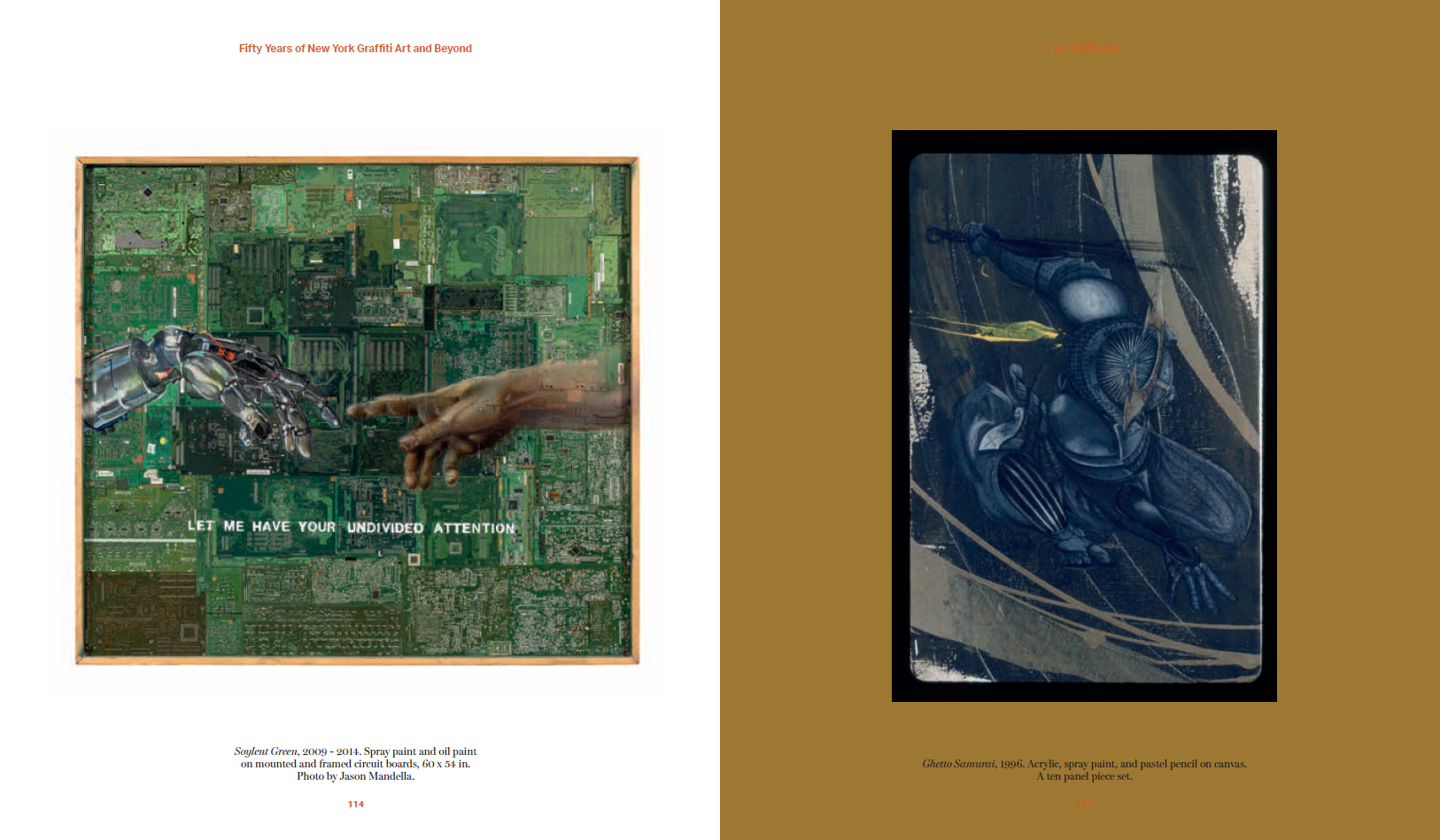 Wild Style, the first feature film about hip hop. Images show the social commentary and poetry used in his early expressionistic work. Subsequent paintings show how Lee's practice has shaped a generation of contemporary artists as he further developed his technique. The imagery captures the mood and urgency of 1980s New York and moves from the streets to the intimacy and maturity of Lee's contemporary studio environment.