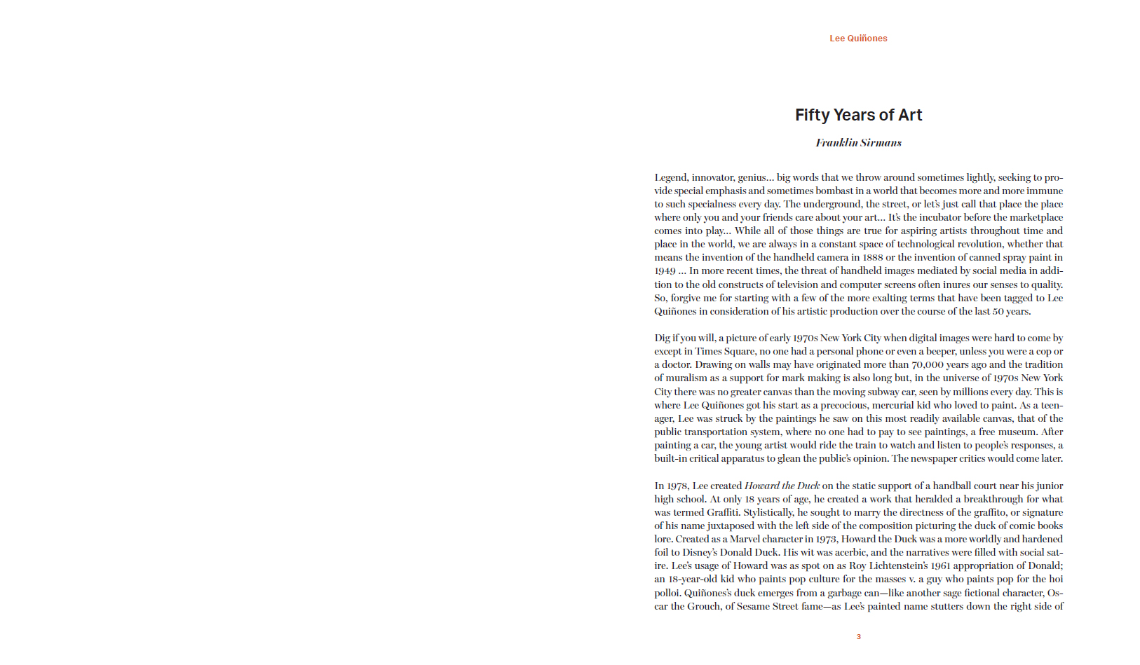 The first monograph of Puerto Rican born artist Lee Quiñones presenting his monumental work and following his evolution over five decades.