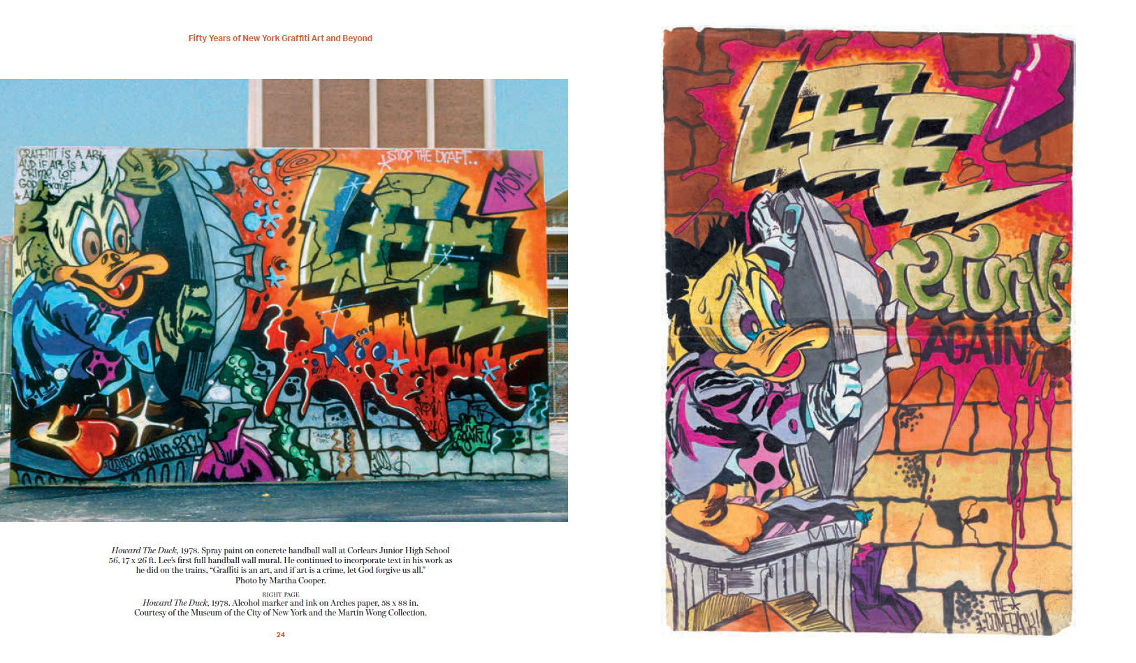 When 14-year-old Lee embarked on his first spray paint mural in 1974, he carried marker drawings into the New York City subway train yards that served as studies to his 52-ft long rolling murals. Drawings, artifacts, and subway photography illustrate how Lee's emergence served as a catalyst for what is now acknowledged as the street art movement. Before Lee, graffiti art was accessed by a small audience of young people who coveted style and scale. Images of Lee's trains illustrate how he changed the face of the movement, infusing kinetic elements of futurism in over 120 subway car murals across the transit system. Lee invented the concept of the freestanding urban mural in his iconic 1978