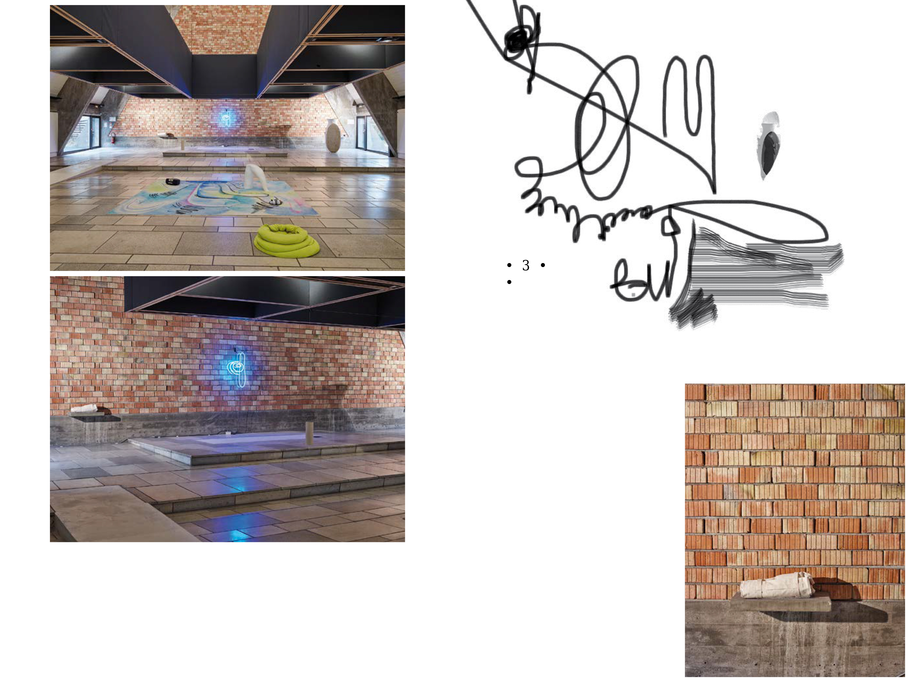Io Burgard (born 1987 in Talence, lives and works in Paris) is an artist whose work explores the fluidity of bodies as well as their mobility within transit points. She travels with ease from reality to fantasy, and vice versa, thanks to the multiple media she uses, from drawing to sculpture, from frescoes to bas-relief. Her fluid, round and plaster-moulded shapes, are possible translations or continuations in relief of hand-drawn lines.Their white colour sometimes appears to designate the void filled with mental images, and sometimes represents porous forms. These elastic, melting, both mineral and organic, both figurative and abstract shapes create a circuit and delineate a space pierced by numerous openings.