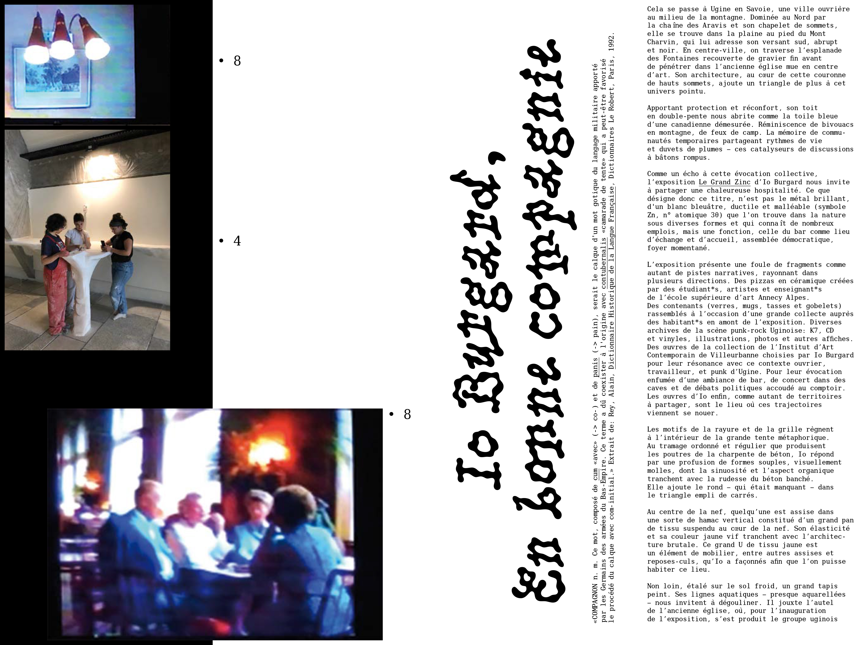 An account of artist Io Burgard's experience in the town of Ugine (archives, concert, residency, exhibition), part fanzine, part punk, part white cube.