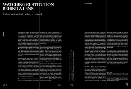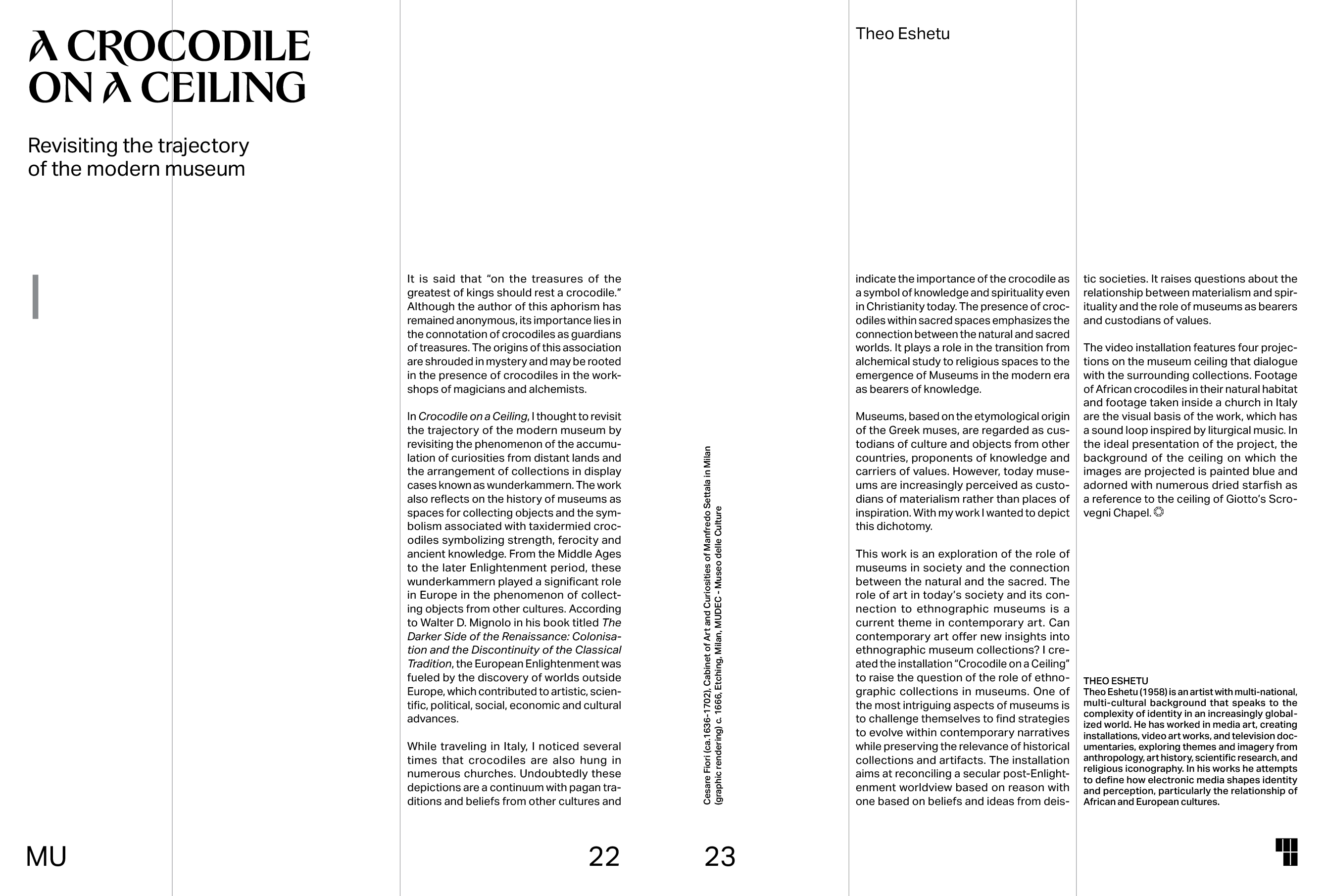 This issue of MUdec United assembles a selection of texts by scholars and artists such as Andreas Angelikadis, Paul Basu, Federico Campagna, Mariuccia Casadio, Lorenzo Castore, Rachaporn Choochuey, Theo Eshetu, Alex Foti, Marco Giusti, Guido Guerzoni, Wissal Houbabi, Katya Inozemtseva, Arto Lindsay, Kit Mackintosh, Wayne Modest, Giuseppe Ricupero, Sara Rizzo, and Tobias Rees.